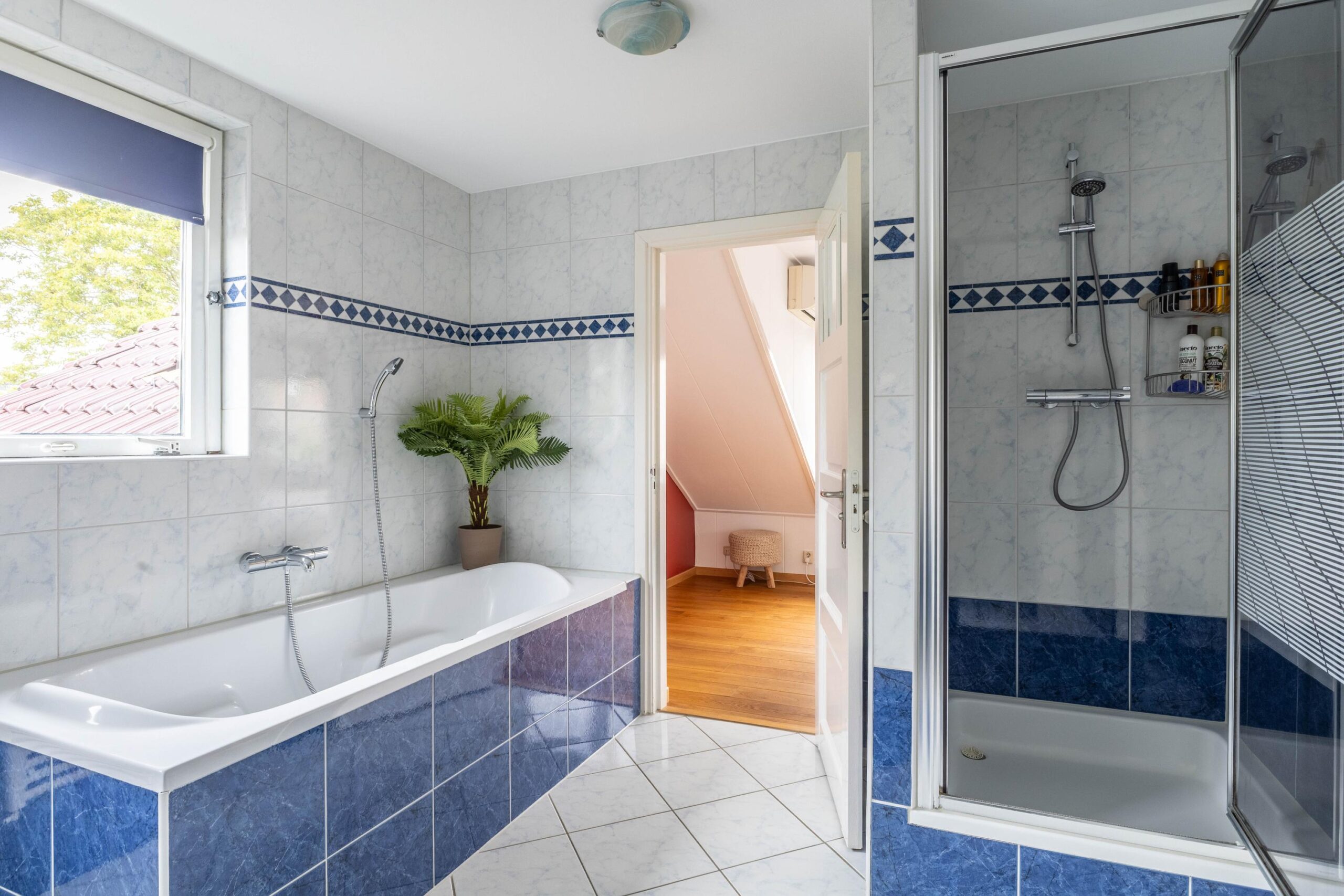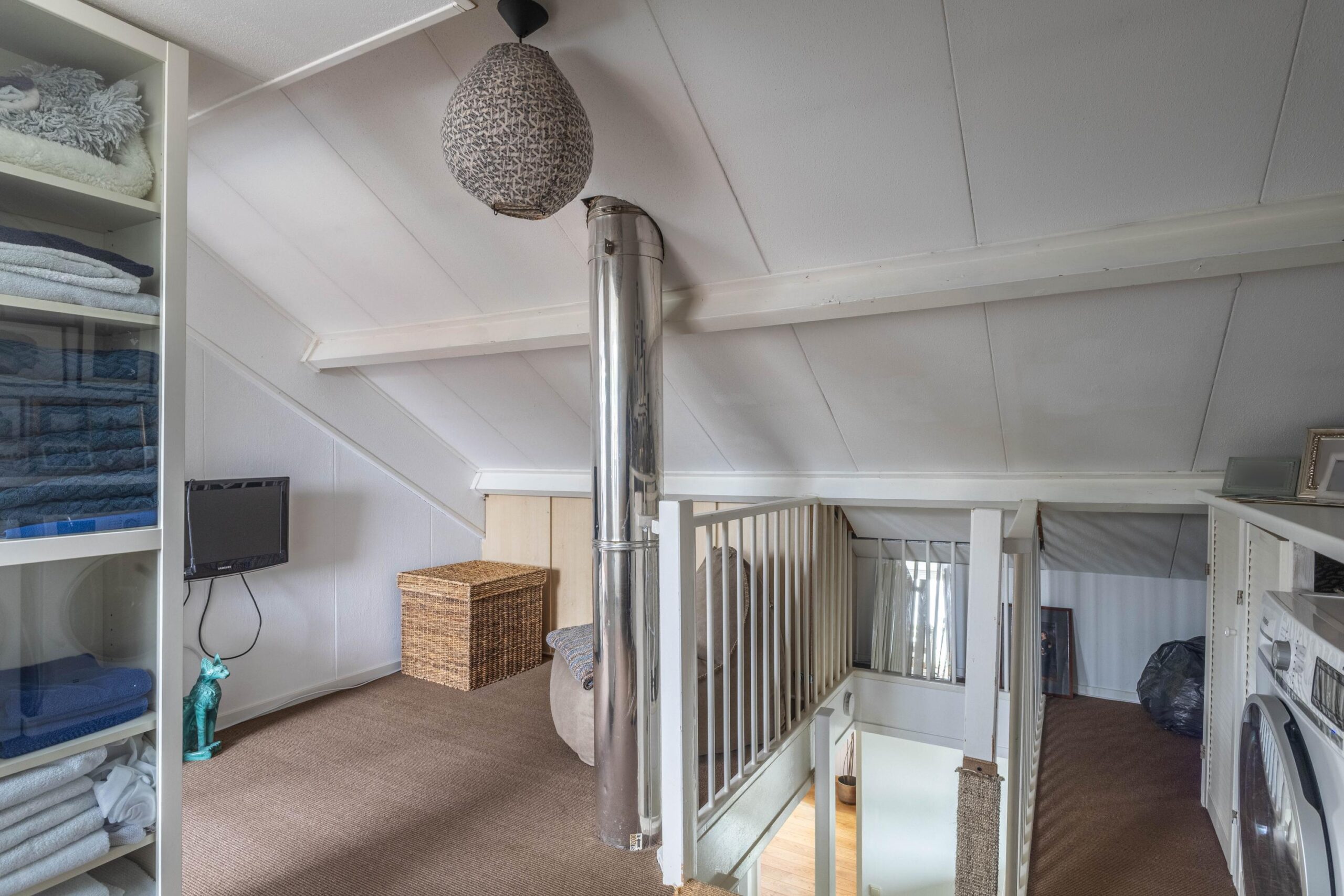 De tweede verdieping biedt nóg meer ruimte met een vierde slaapkamer en een aparte opslagruimte. Op de overloop bevindt zich daarnaast een praktische wasruimte met aansluitingen voor de wasmachine en droger. De cv-installatie die vernieuwd is in 2023, bevindt zich in een aparte berging.