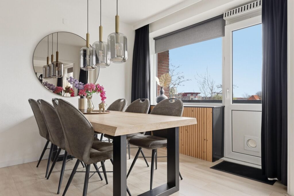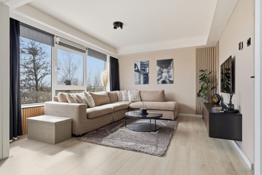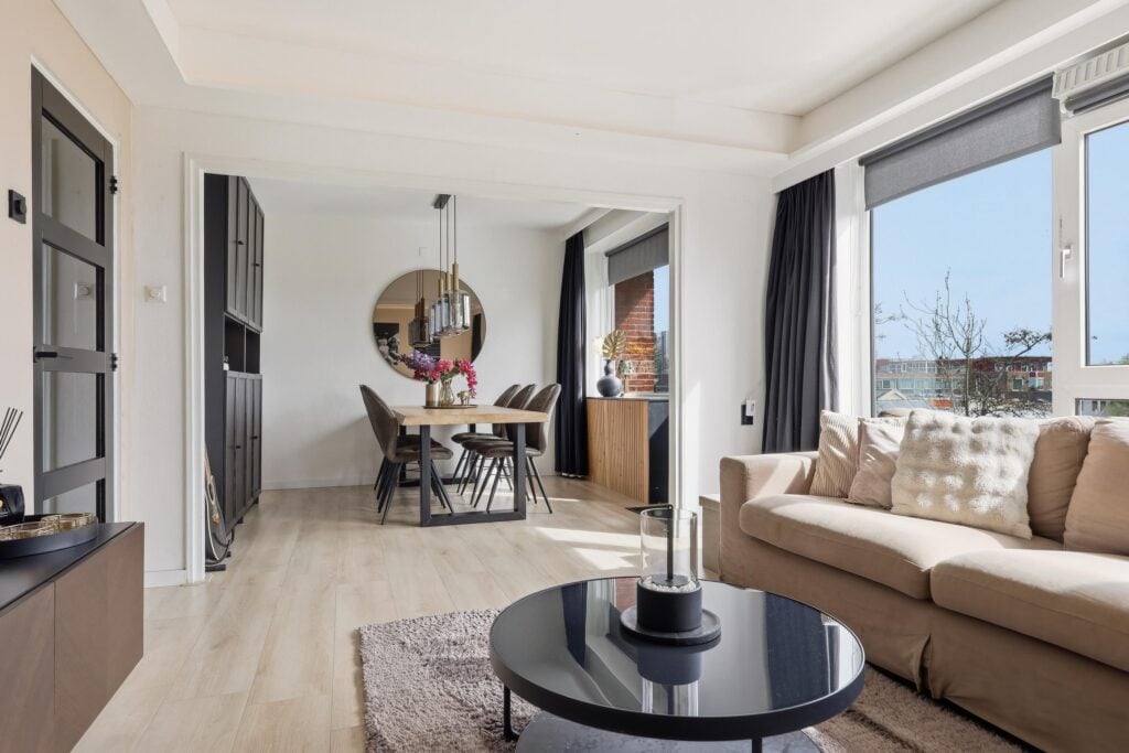 Bij binnenkomst valt meteen de verzorgde afwerking op. De woonkamer is licht en ruim opgezet, met grote ramen die zorgen voor een prettige lichtinval en een open gevoel. Hier is voldoende ruimte voor zowel een comfortabele zithoek als een eethoek. De keuken is modern uitgevoerd, voorzien van diverse inbouwapparatuur en praktisch ingericht, waardoor je hier fijn kunt koken.