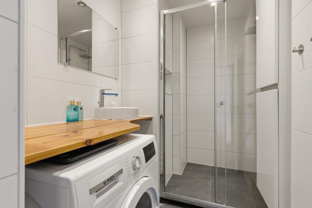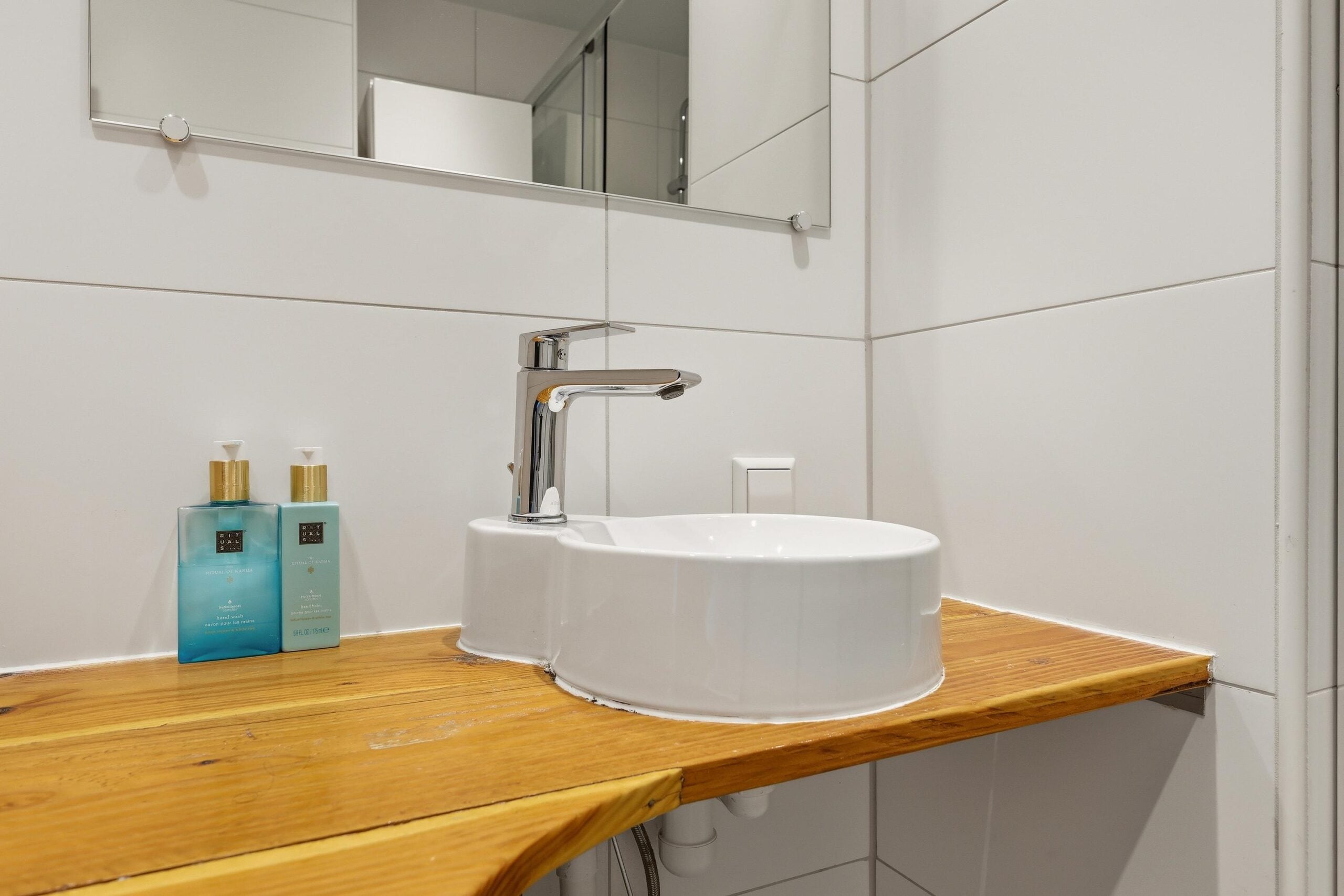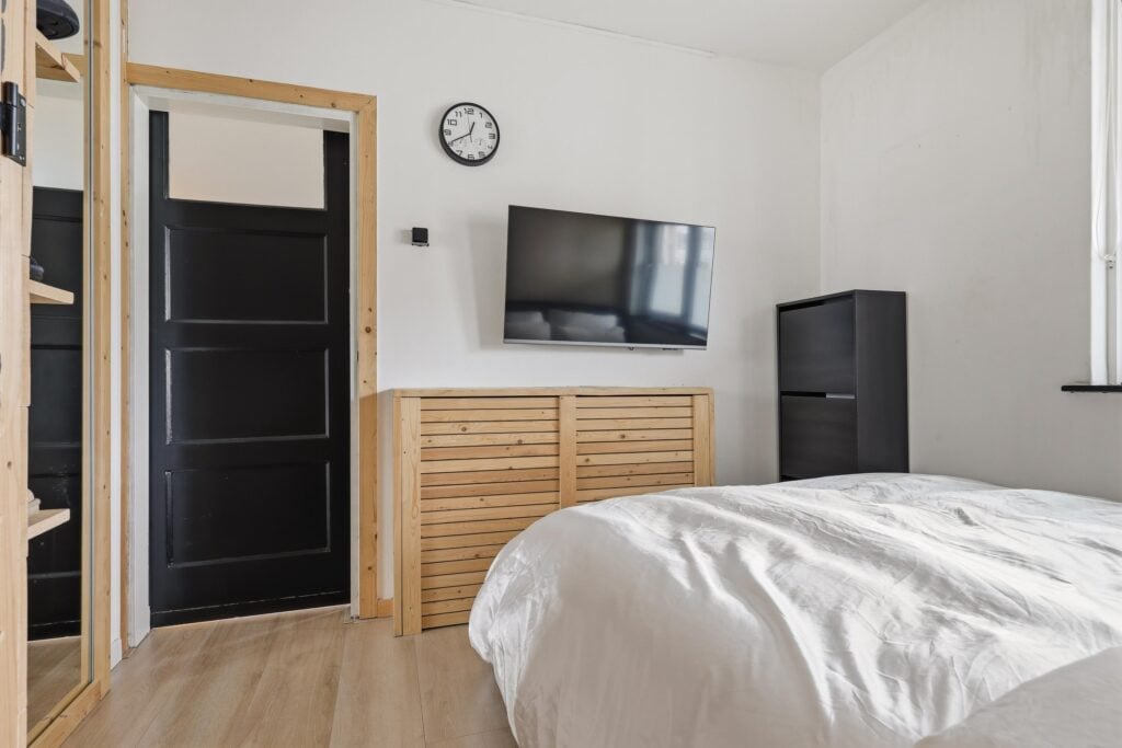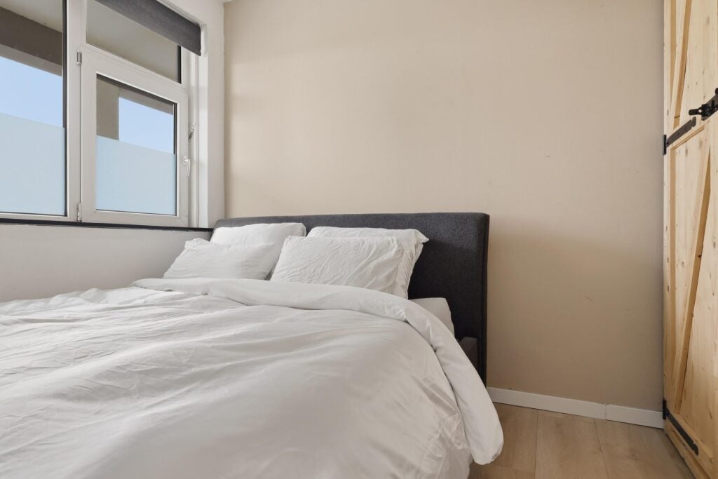 Het appartement beschikt over één ruime slaapkamer en een tweede kamer die momenteel is ingericht als kastenkamer. Deze ruimte is ook uitstekend te gebruiken als logeer-, werk- of hobbykamer, wat de woning extra flexibel maakt. De badkamer is netjes en ruim opgezet, voorzien van een douche en wastafelmeubel en praktisch ingedeeld.