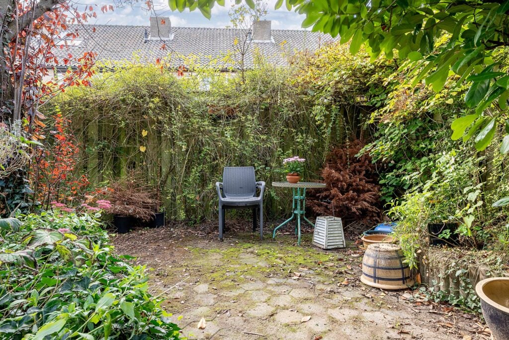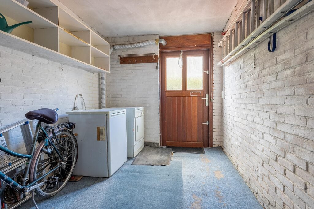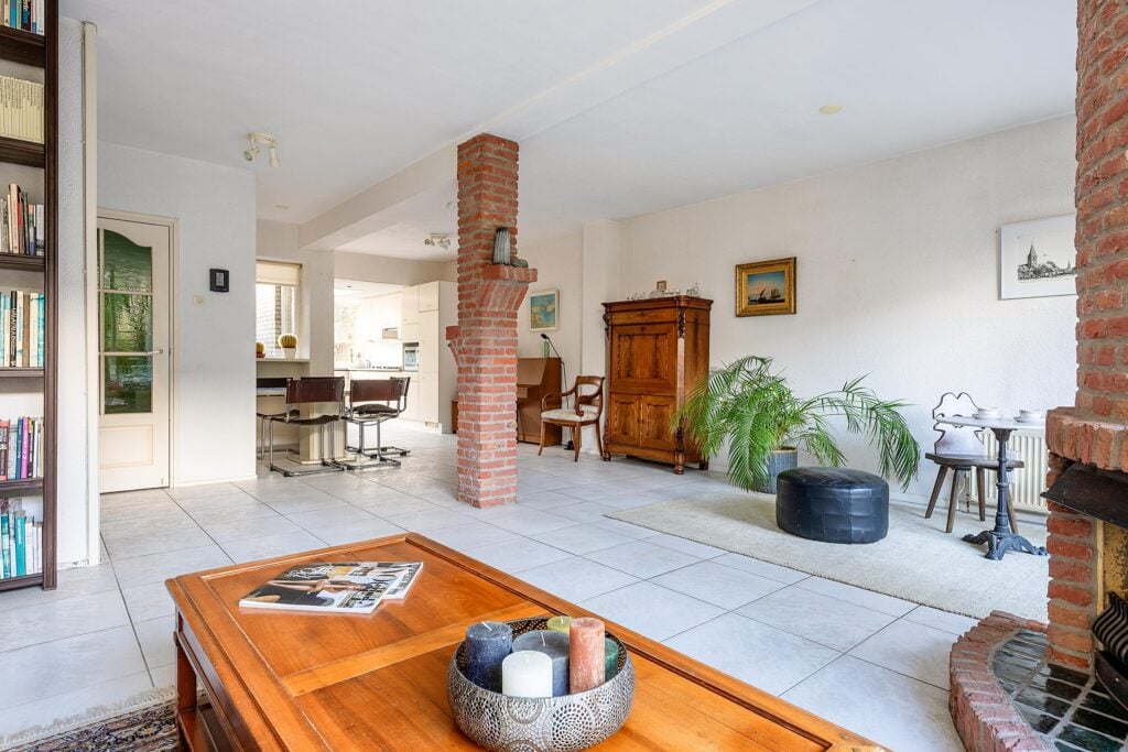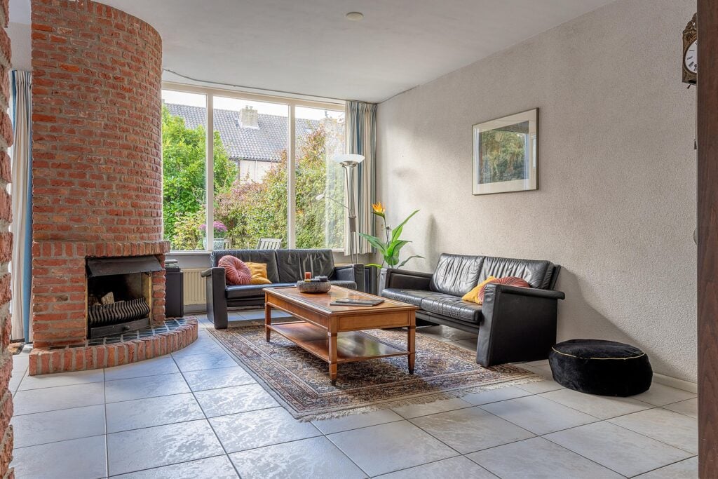 Je stapt binnen in de ruime hal waar zich de garderobe, meterkast en het toilet met fonteintje bevinden. Vanuit de hal heb je zowel toegang tot de woonkamer als tot de praktische berging aan de voorzijde. De berging is zowel van binnenuit als via buiten toegankelijk en is ideaal voor het opbergen van fietsen, gereedschap of voorraad. De woonkamer is ruimtelijk en heeft een gezellige tuingerichte zithoek met open haard. Door de grote raampartijen aan de achterzijde is het hier heerlijk licht en heb je mooi zicht op de groene tuin. Een schuifpui verbindt de woonkamer met de achtertuin, welke uniek is door het formaat en de privacy aan de achterzijde. Aan de voorzijde van de woning bevindt zich de open keuken met lichtkoepel en zicht op de voortuin. Aangrenzend aan de keuken is er voldoende ruimte voor een sfeervolle eethoek. De nabijgelegen trap geeft toegang tot de eerste verdieping.