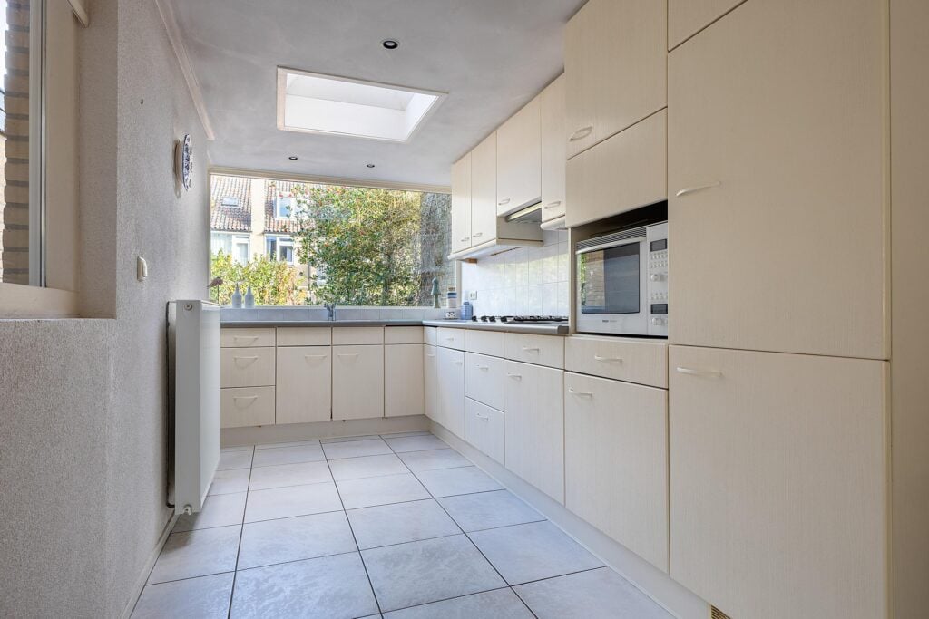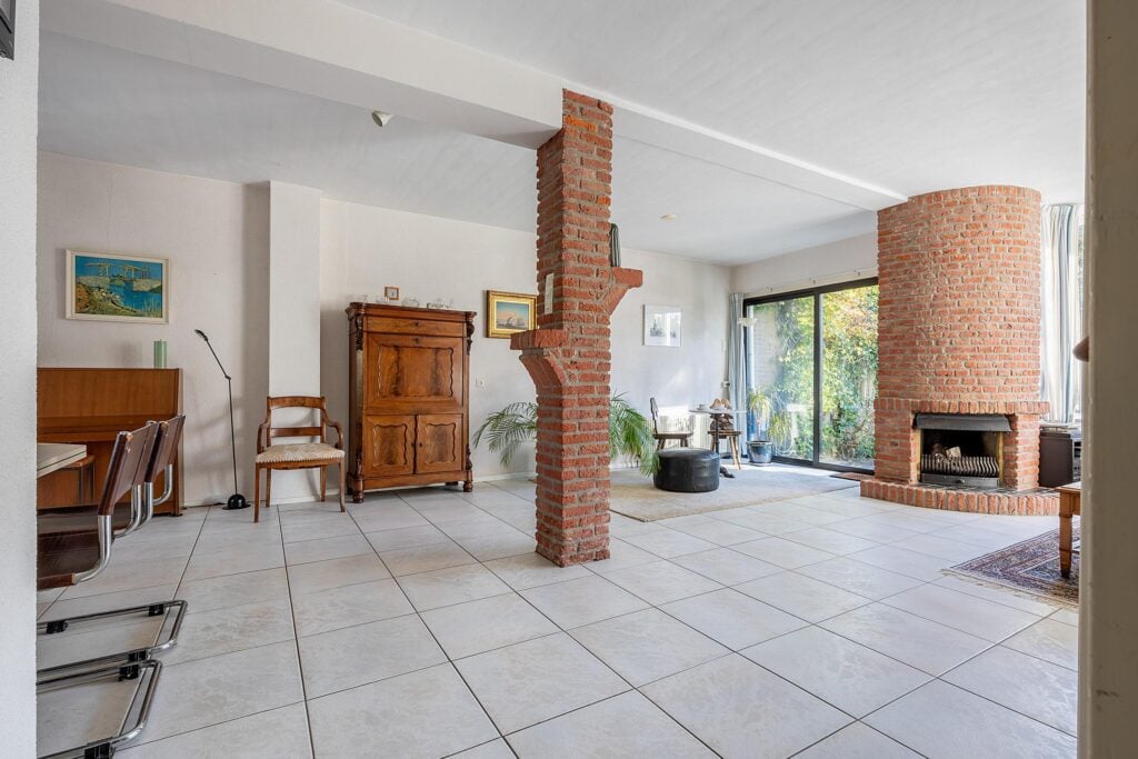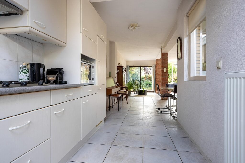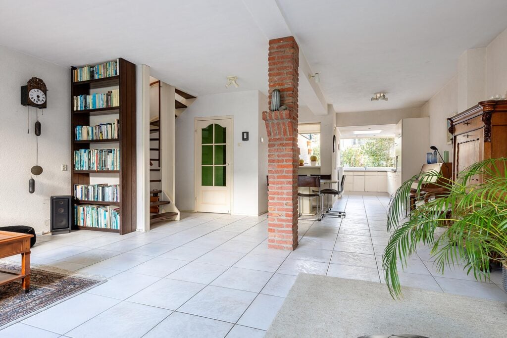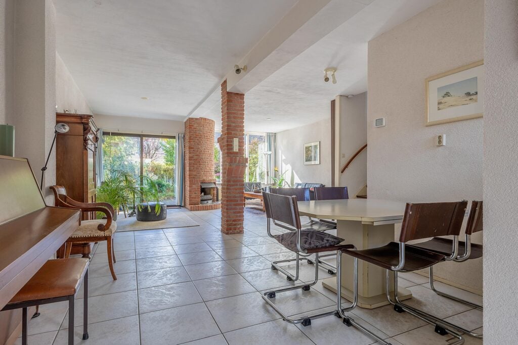 Je stapt binnen in de ruime hal waar zich de garderobe, meterkast en het toilet met fonteintje bevinden. Vanuit de hal heb je zowel toegang tot de woonkamer als tot de praktische berging aan de voorzijde. De berging is zowel van binnenuit als via buiten toegankelijk en is ideaal voor het opbergen van fietsen, gereedschap of voorraad. De woonkamer is ruimtelijk en heeft een gezellige tuingerichte zithoek met open haard. Door de grote raampartijen aan de achterzijde is het hier heerlijk licht en heb je mooi zicht op de groene tuin. Een schuifpui verbindt de woonkamer met de achtertuin, welke uniek is door het formaat en de privacy aan de achterzijde. Aan de voorzijde van de woning bevindt zich de open keuken met lichtkoepel en zicht op de voortuin. Aangrenzend aan de keuken is er voldoende ruimte voor een sfeervolle eethoek. De nabijgelegen trap geeft toegang tot de eerste verdieping.