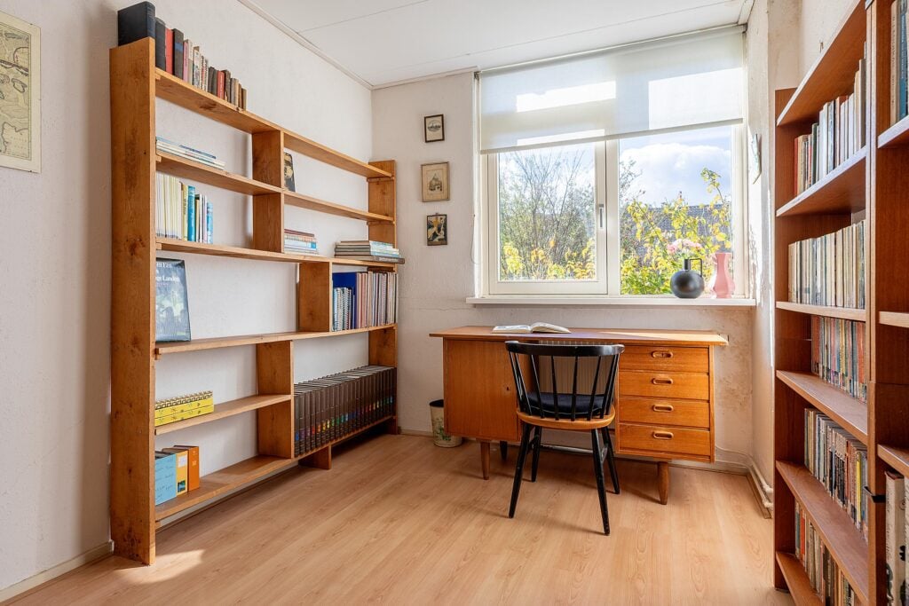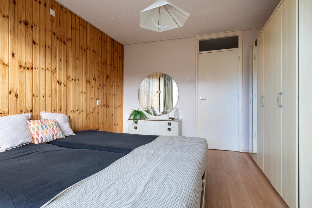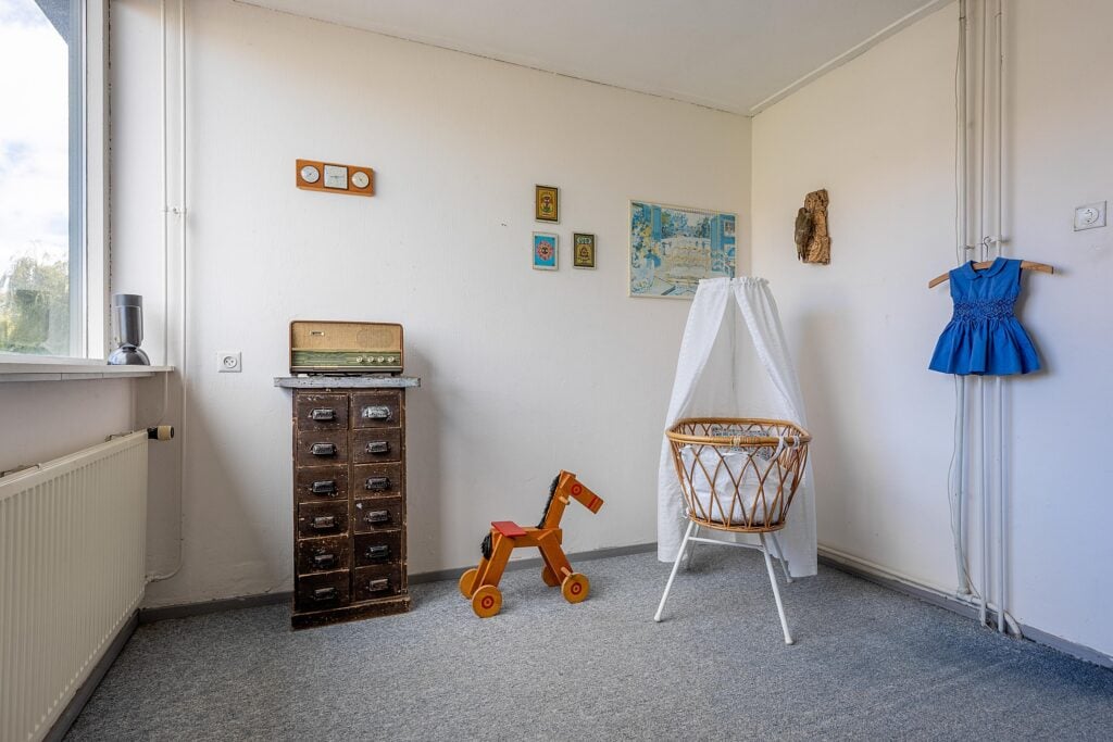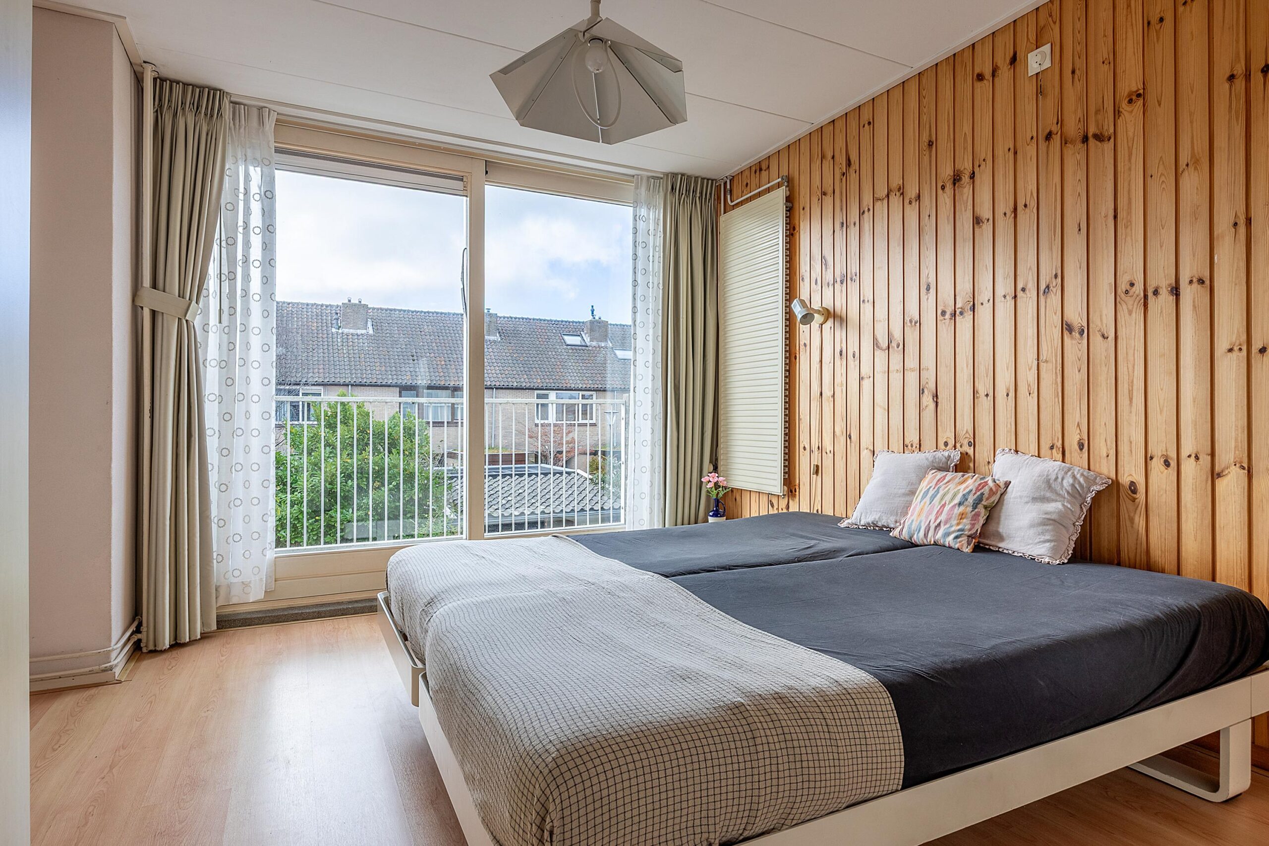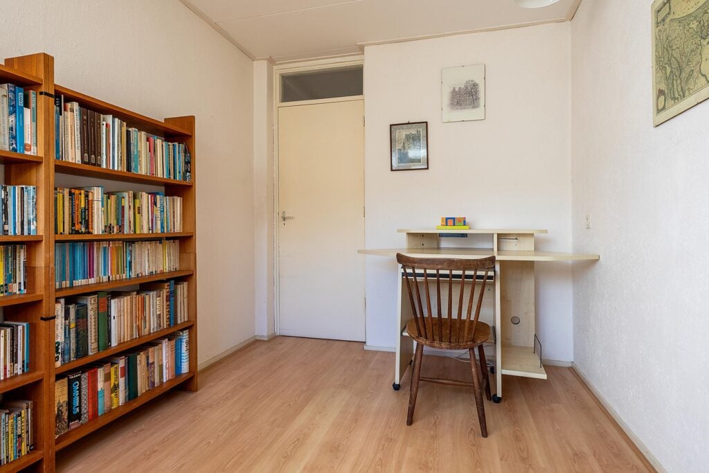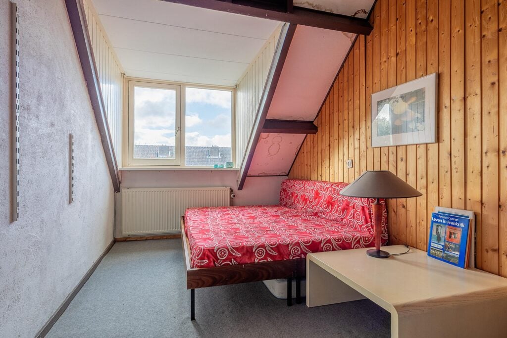 De eerste verdieping biedt drie lichte slaapkamers, een zeer ruime badkamer en een overloop met aparte wasruimte. De slaapkamer die aan de voorzijde is gelegen is momenteel in gebruik als kinderkamer. Aan de achterzijde bevinden zich nog twee slaapkamers. De hoofdslaapkamer geeft toegang tot het balkon die op het zuidwesten is gelegen en waardoor je hier heerlijk van de middag- en avondzon kunt genieten. De derde slaapkamer is momenteel in gebruik als werkruimte maar is qua formaat ook zeer geschikt als slaapkamer. De retro badkamer is compleet uitgevoerd met ligbad, aparte douche, twee wastafels en een tweede toilet. Deze verdieping voelt licht en ruim aan door de vele raampartijen en de prettige indeling. De vaste trap vanuit de overloop geeft toegang tot de tweede verdieping.