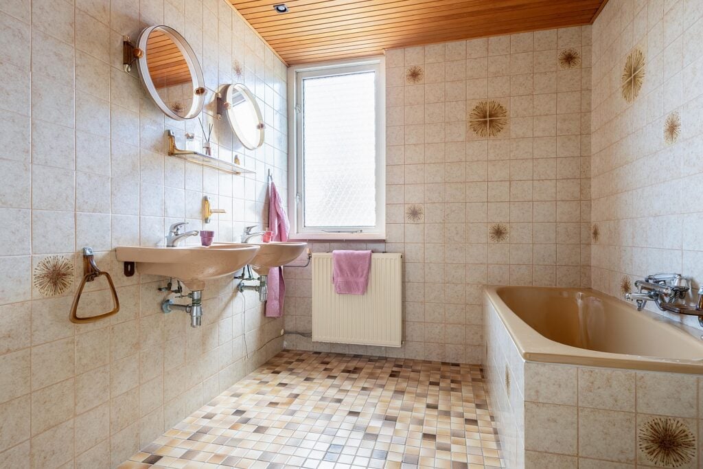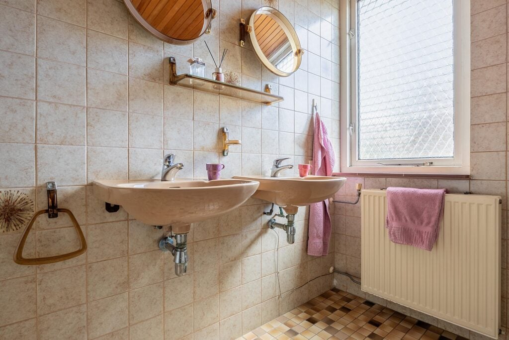 – ruime badkamer met ligbad, douchehoek en twee wastafels;