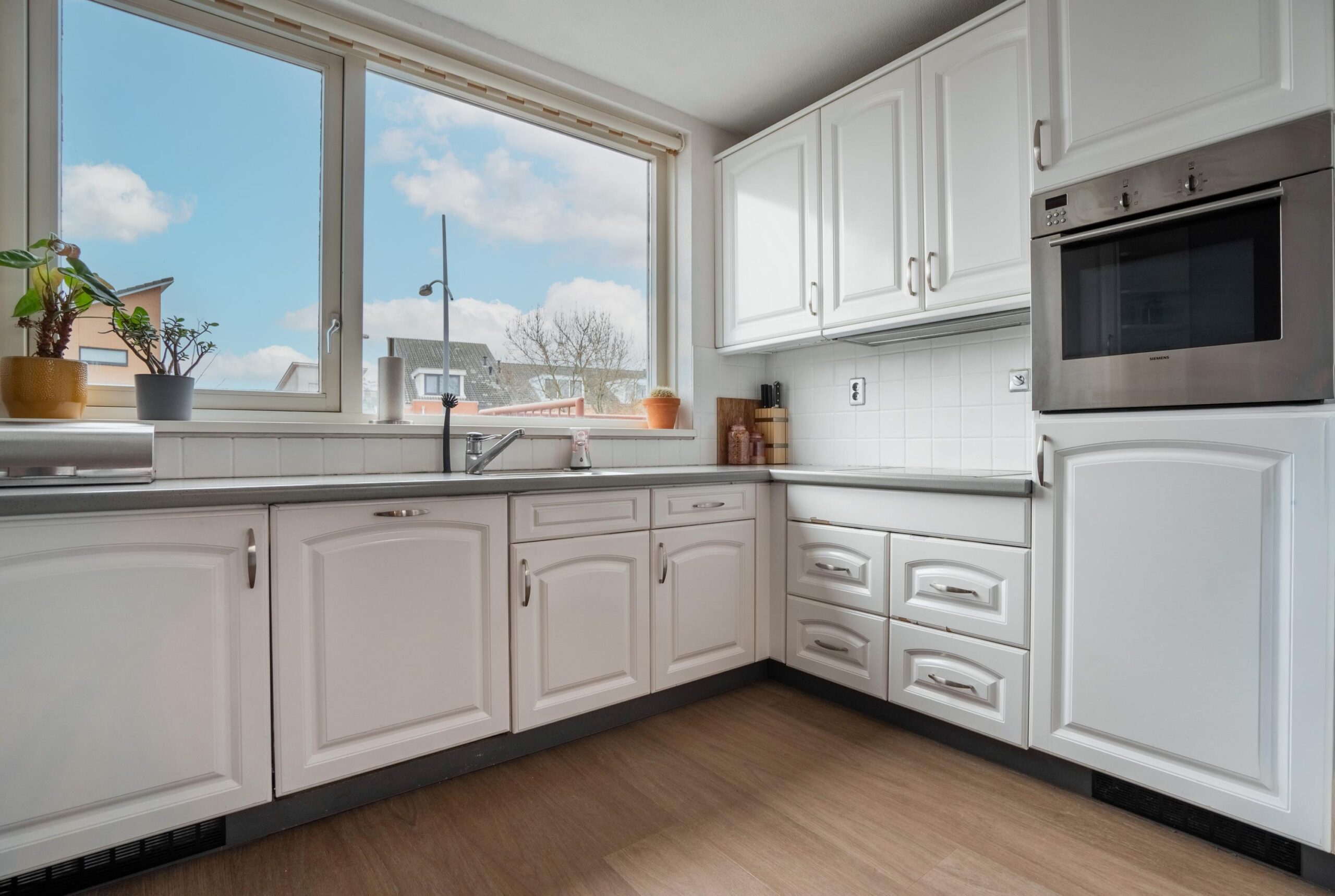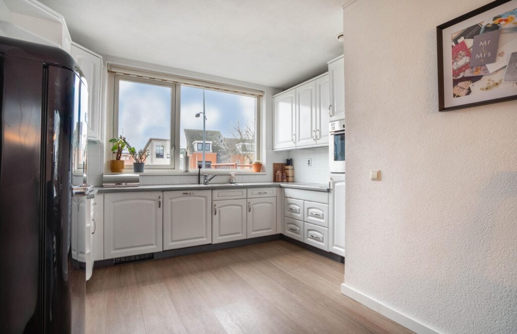 De eerste verdieping vormt het hart van de woning. De woonkamer is licht en ruim opgezet, met voldoende plek voor een comfortabele zithoek en een gezellige eethoek. Grote ramen zorgen voor een fijne lichtinval en geven een open gevoel. De keuken is praktisch ingericht en voorzien van diverse inbouwapparatuur, waaronder een in 2022 vernieuwde vaatwasser. Hier kook je met gemak terwijl je contact houdt met de leefruimte. En wil je naar buiten? Via de woonkamer stap je zo op het grote dakterras dat je vrijheid, frisse lucht en zon zal geven.