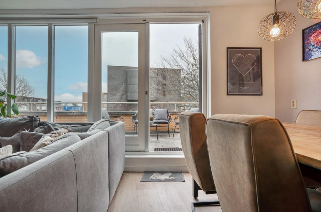 Via de gezamenlijke entree bereik je de woning. Binnen valt direct de prettige indeling op, waarbij wonen en slapen logisch van elkaar zijn gescheiden.