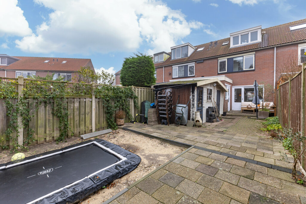 De achtertuin, met een diepte van circa 12 meter, is een heerlijk ruim pluspunt. Dankzij de gunstige ligging geniet je hier tot laat in de avond van de zon. De tuin beschikt over een berging en een eigen achterom. In de buurt vind je bovendien tal van speelplekken en is het een kind- én diervriendelijke omgeving, ideaal voor wie graag rustig en ruim woont.