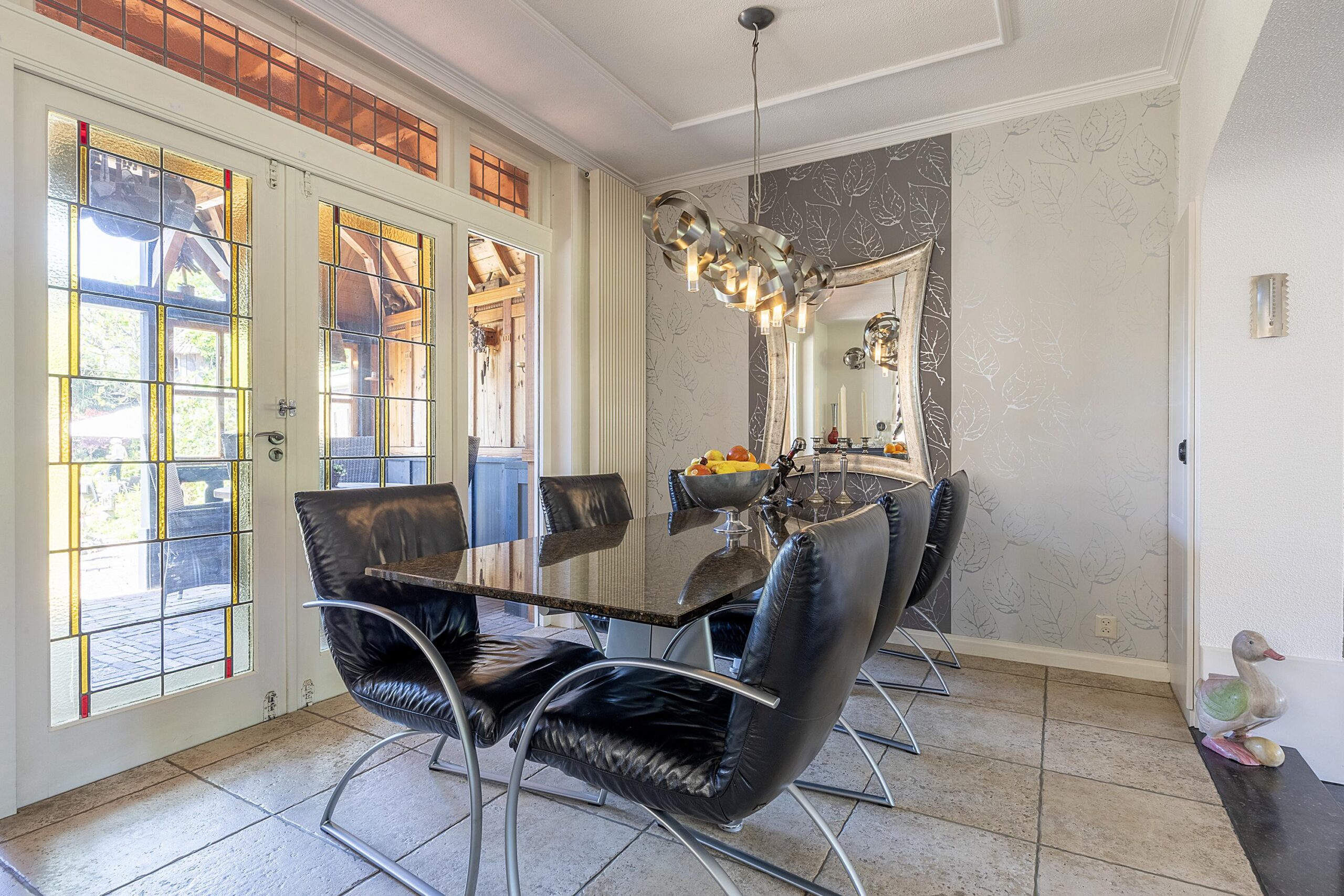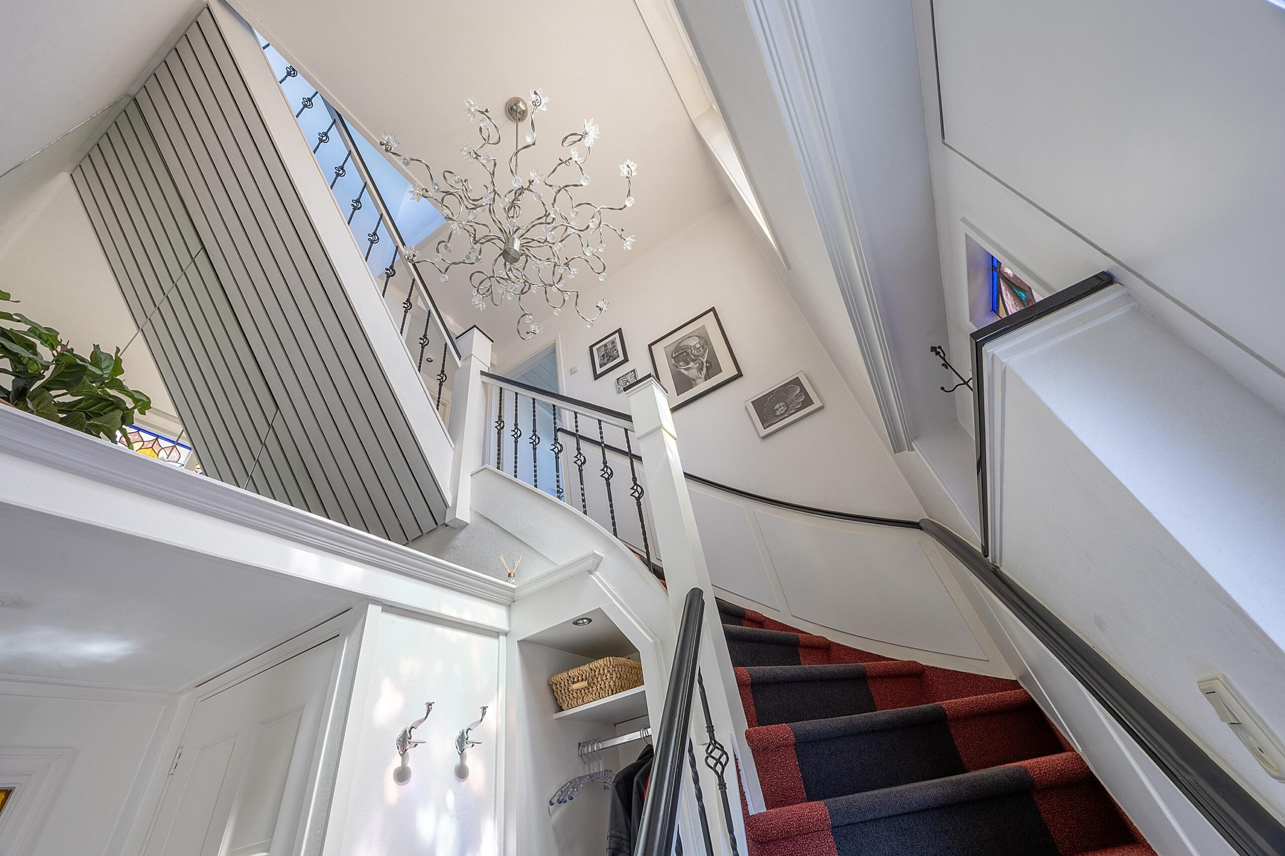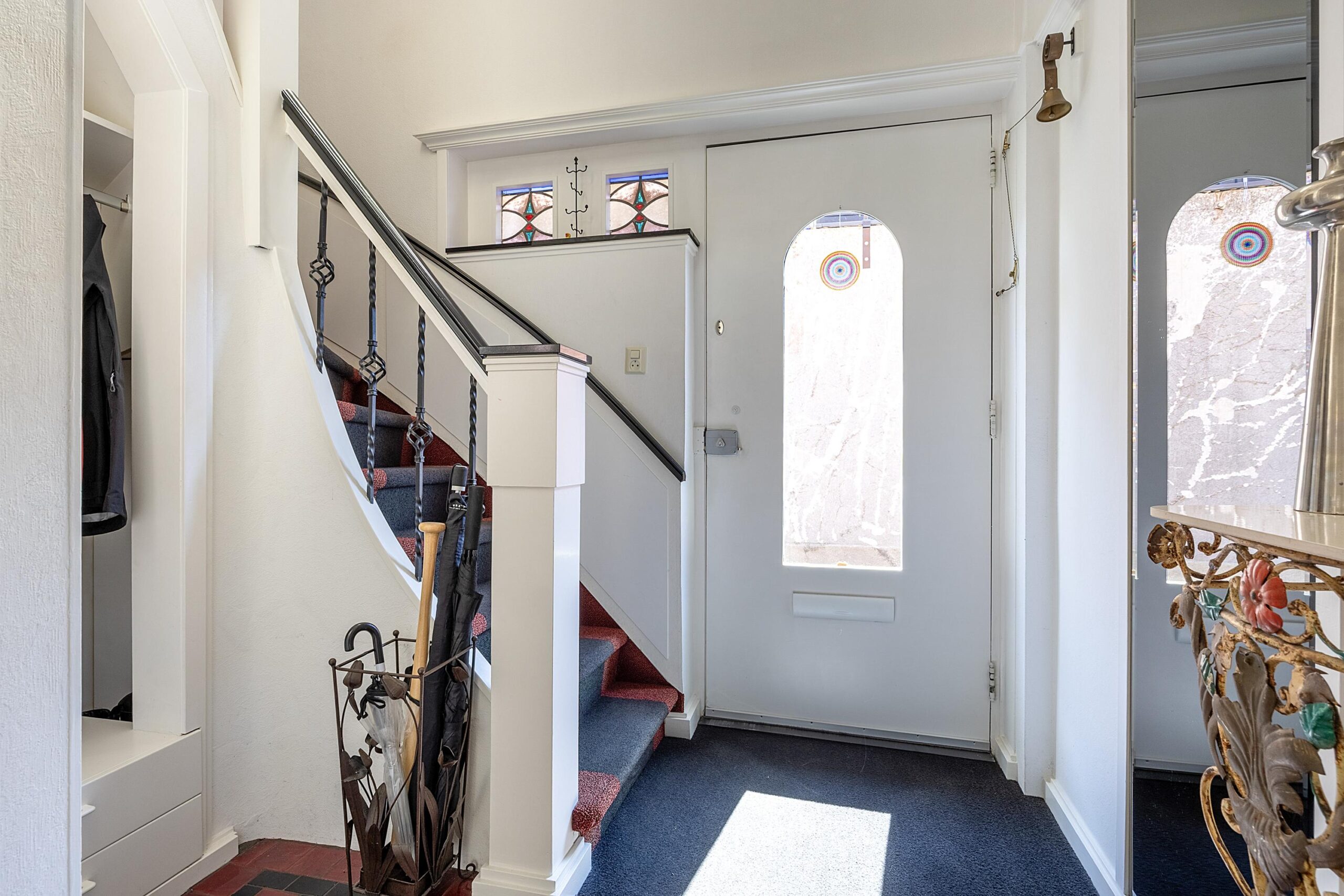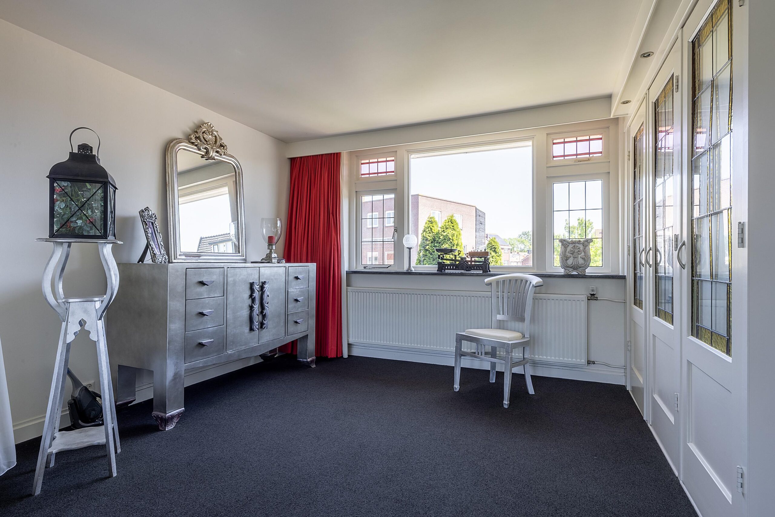 Wanneer je Velsen-Noord binnen komt rijden, verwacht je niet dat deze parel aan de rechterzijde van de Wijkerstraatweg verborgen zit. Parkeer de auto op eigen terrein en stap binnen in de hoge ruime hal met glas in lood ramen en toegang tot het seperate toilet onder de prestigieuze trap.