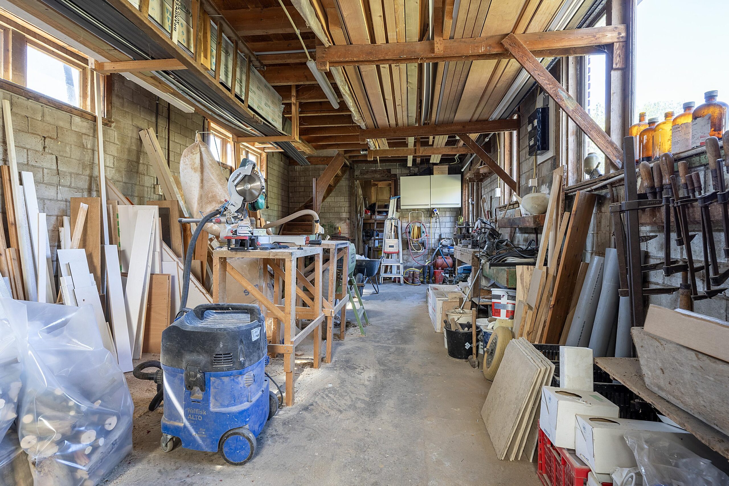 Naast de fantastische tuin zijn er nog meer bijzonderheden welke optimaal benut kunnen worden. Vanuit de tuin heb je toegang tot een praktische houten schuur voor het opbergen van tuinspullen. Maar het grootste pluspunt is de grote stenen schuur met verdieping welke diverse mogelijkheden heeft tot het ombouwen van een hobby- of praktijkruimte of wellicht wel een ruimte voor thuiswonende kinderen of een mantelzorgwoning.
