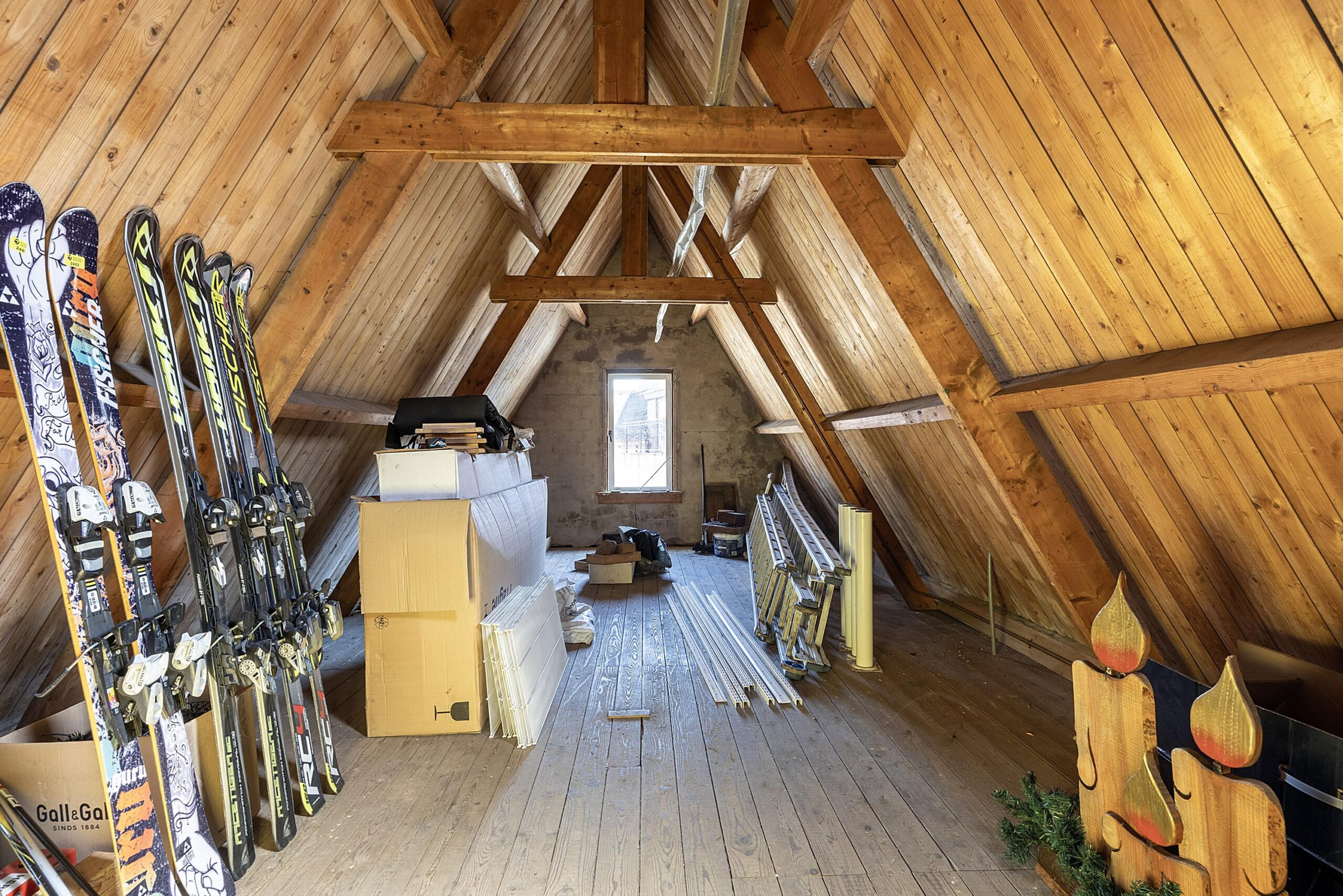 – zelfgemaakte houten overkapping in skihutstijl;