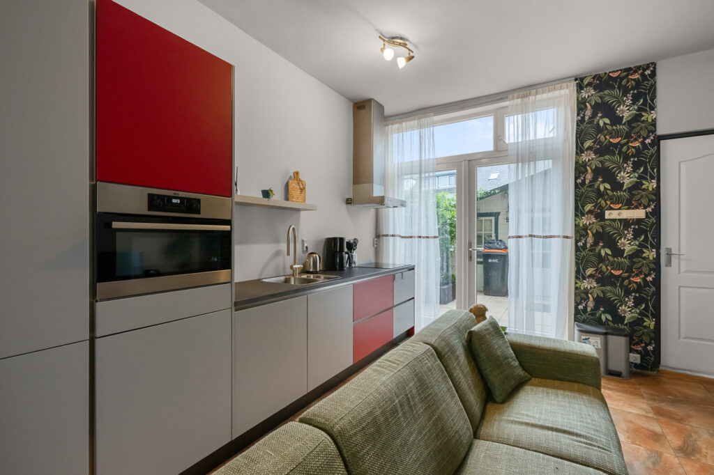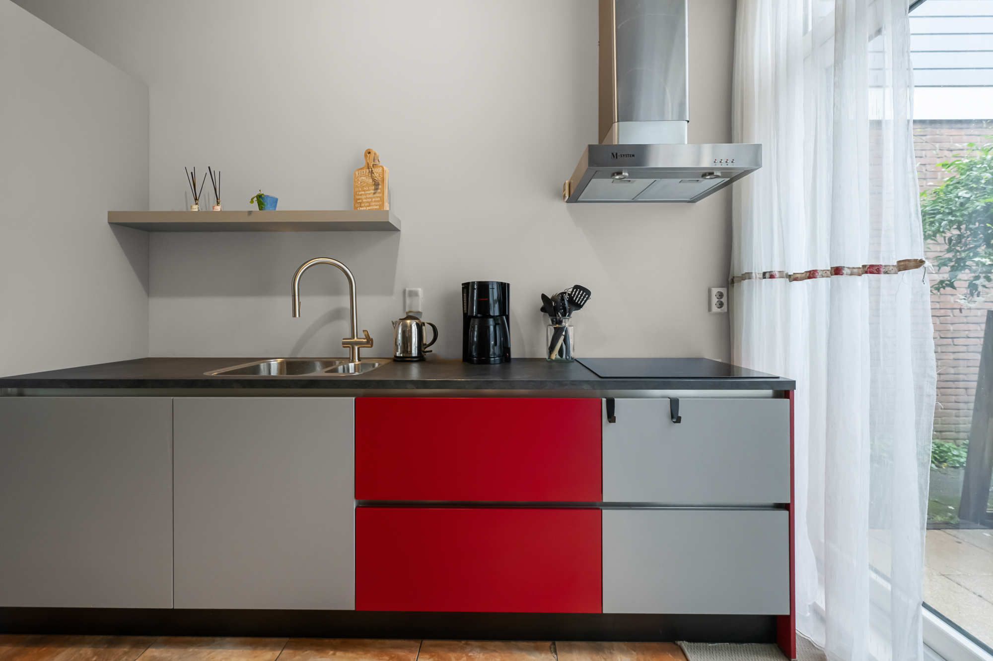 De open keuken sluit naadloos aan op de woonkamer en is praktisch ingericht. Je beschikt hier over diverse inbouwapparatuur en voldoende werk- en kastruimte, waardoor koken hier een plezierige bezigheid is.