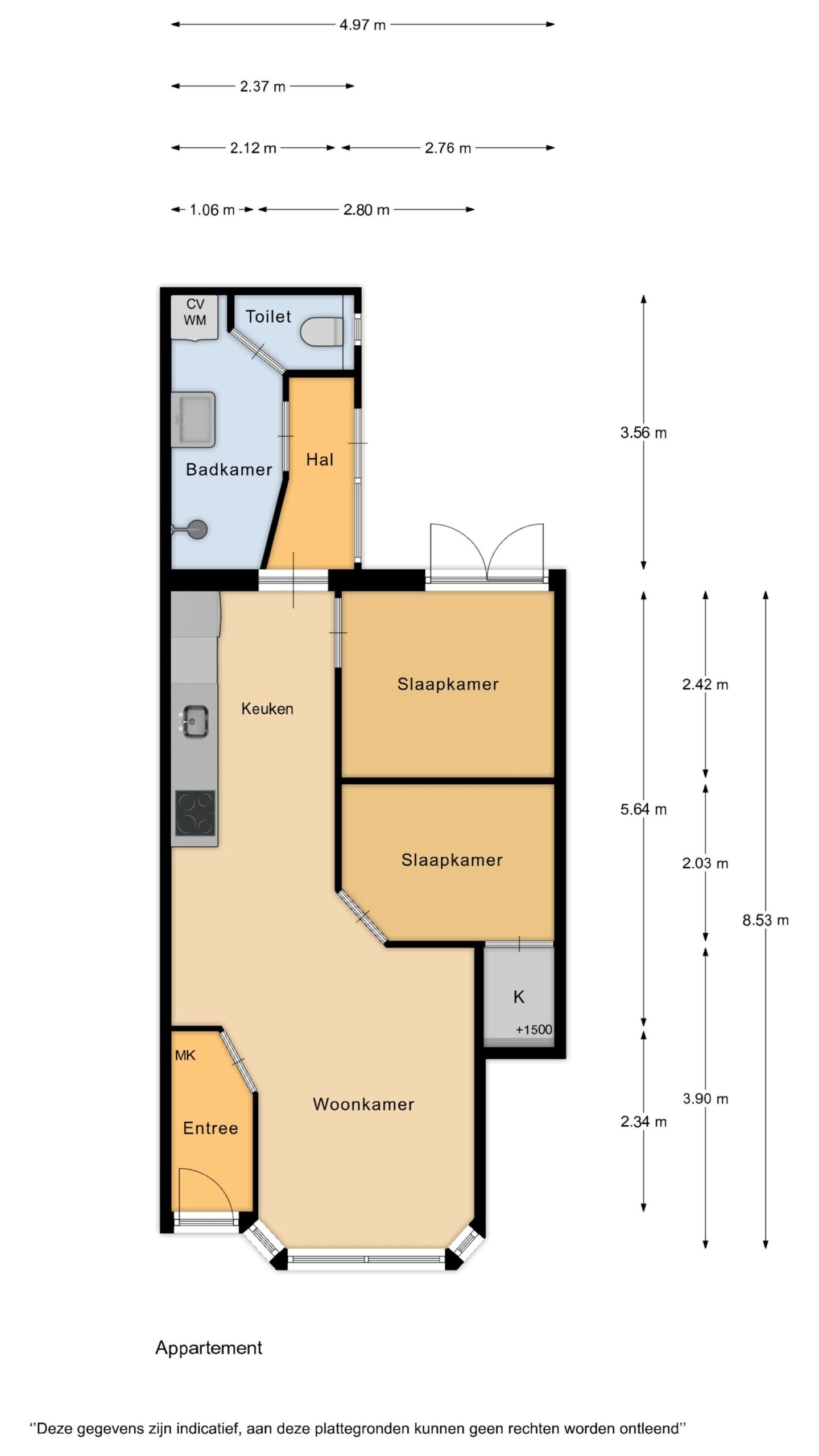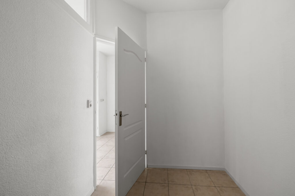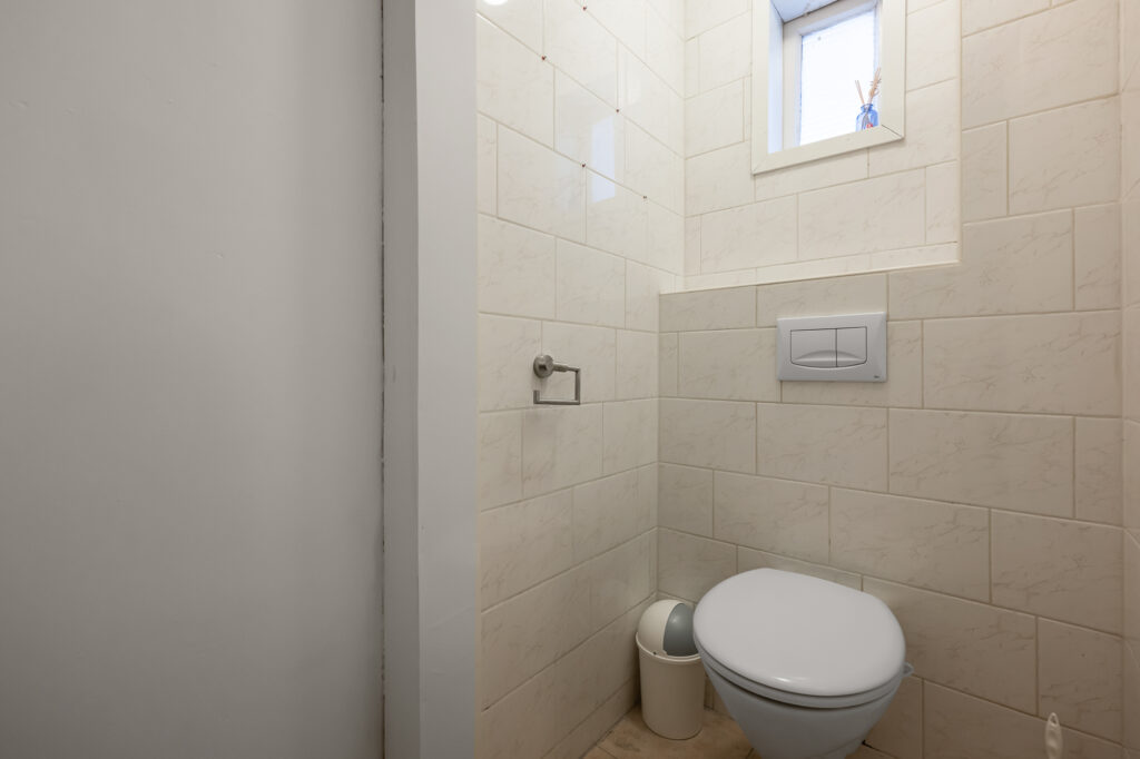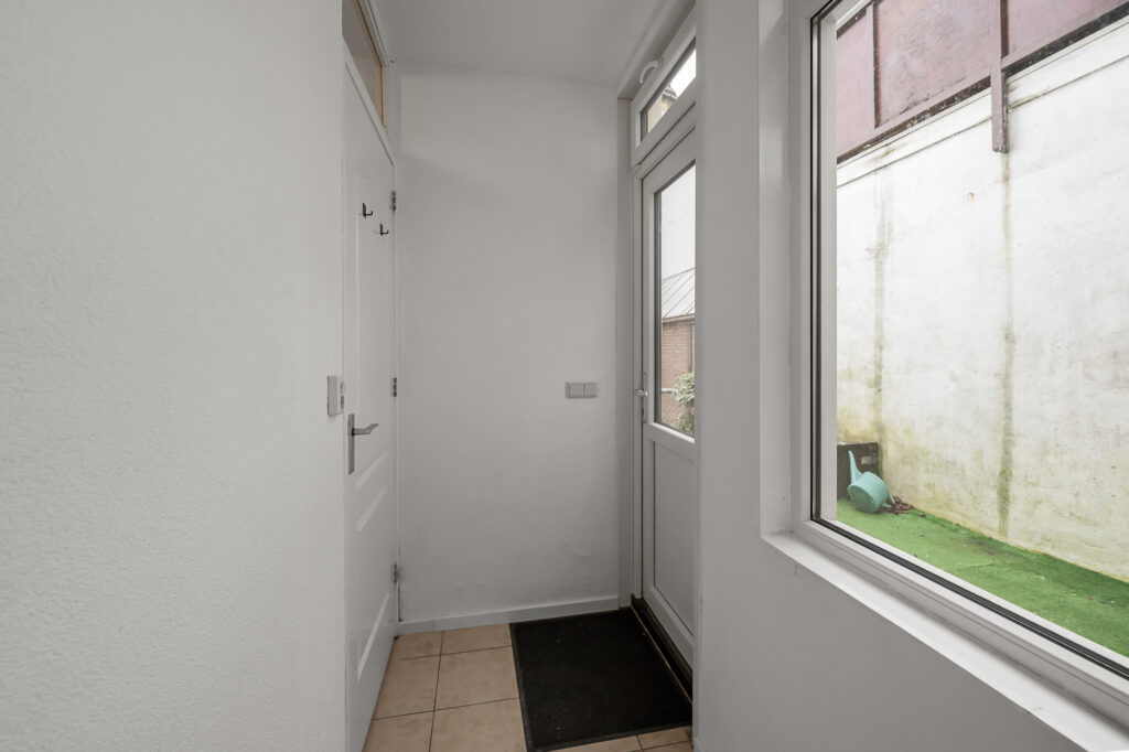 Via de eigen entree met meterkast kom je de woning binnen. Vanuit hier zijn alle vertrekken overzichtelijk bereikbaar, wat zorgt voor een praktische en prettige indeling.