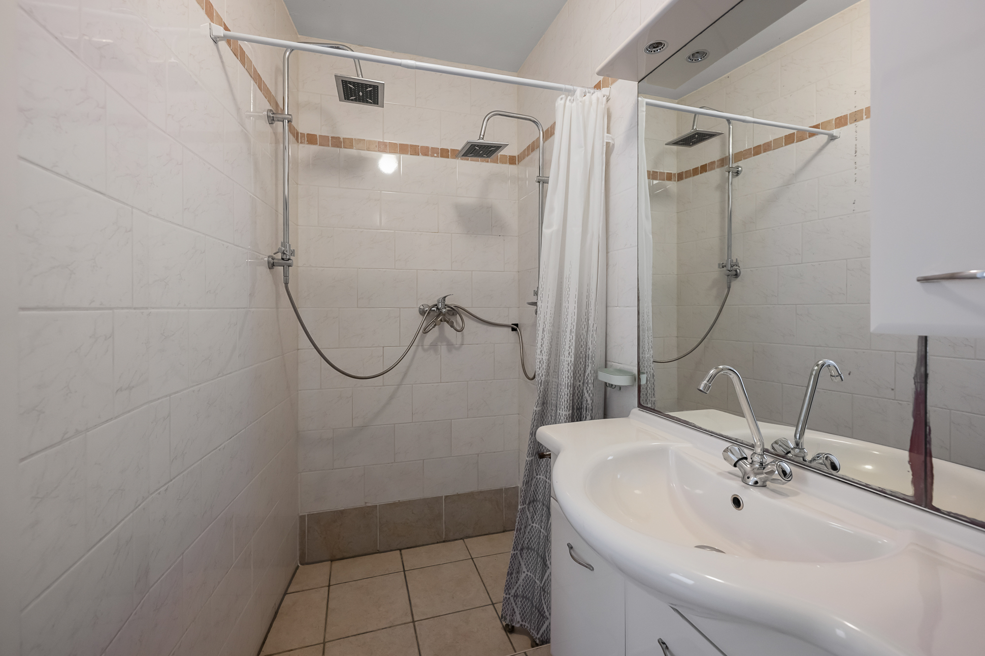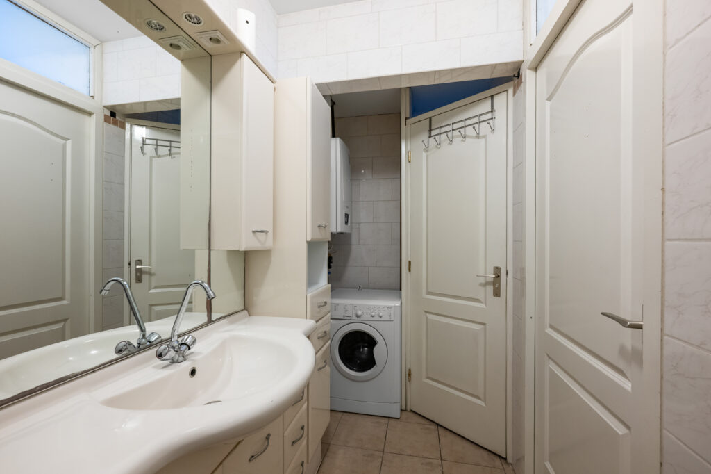 De woning beschikt over twee slaapkamers, beide van goed formaat en veelzijdig in te richten. De hoofdslaapkamer heeft openslaande deuren naar de tuin; de tweede kamer is uitstekend geschikt als werk- of logeerkamer. De badkamer is netjes uitgevoerd en voorzien van een douche, wastafel en toilet.