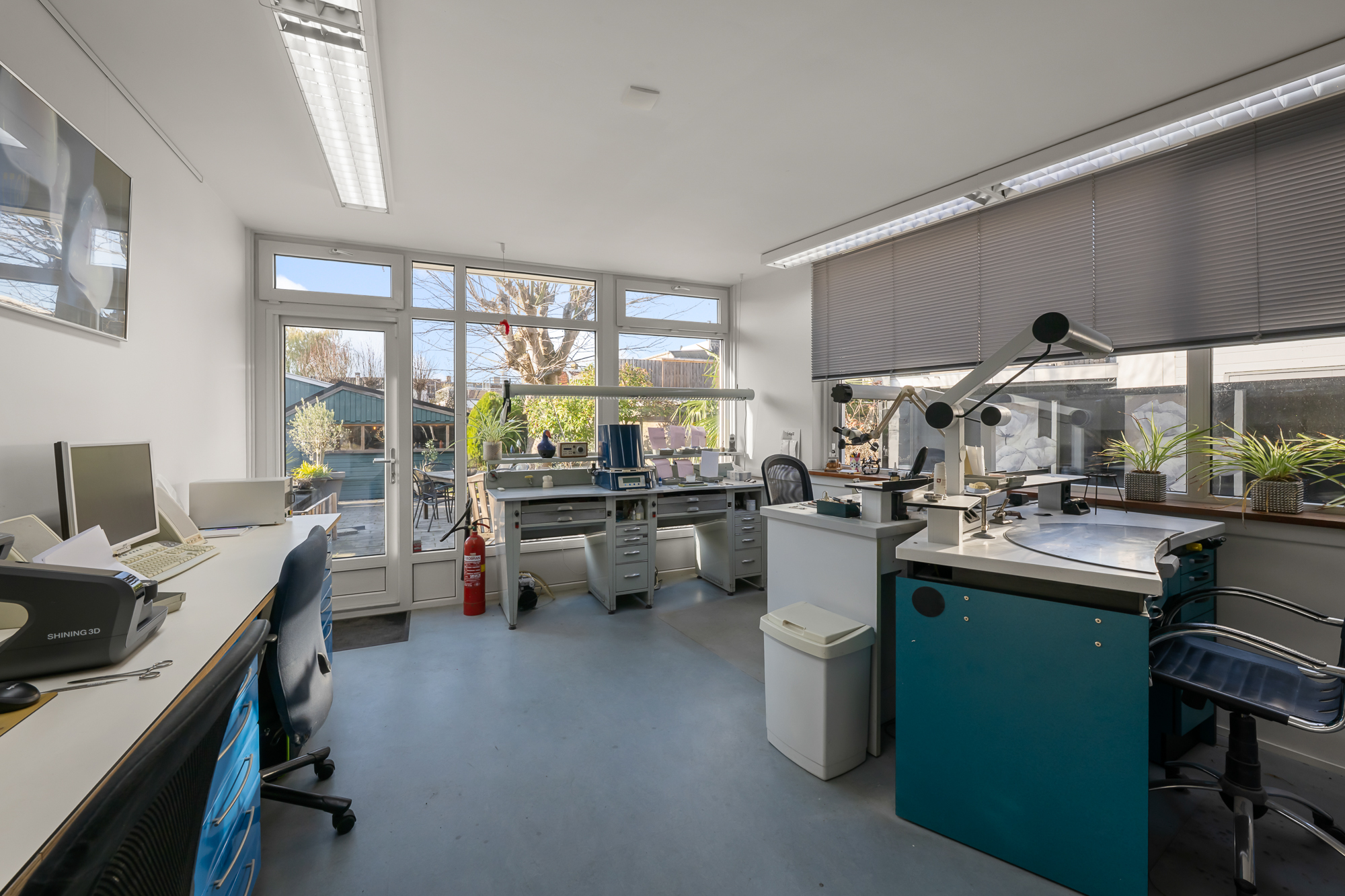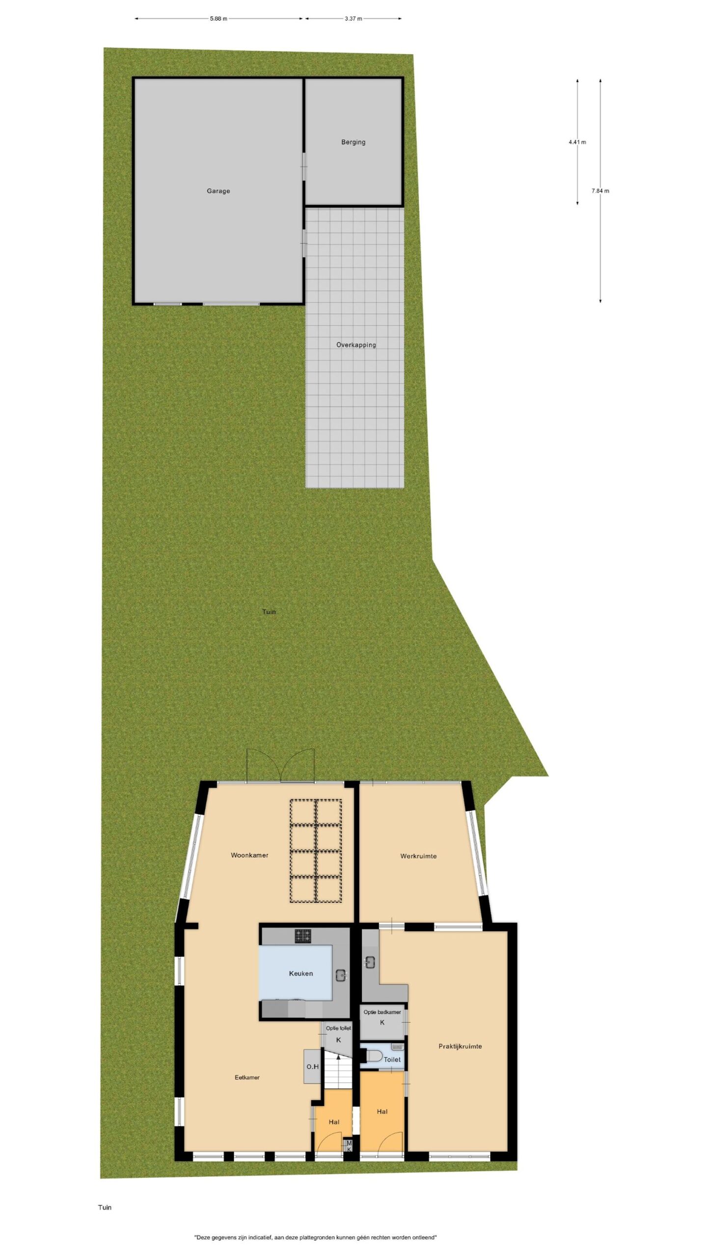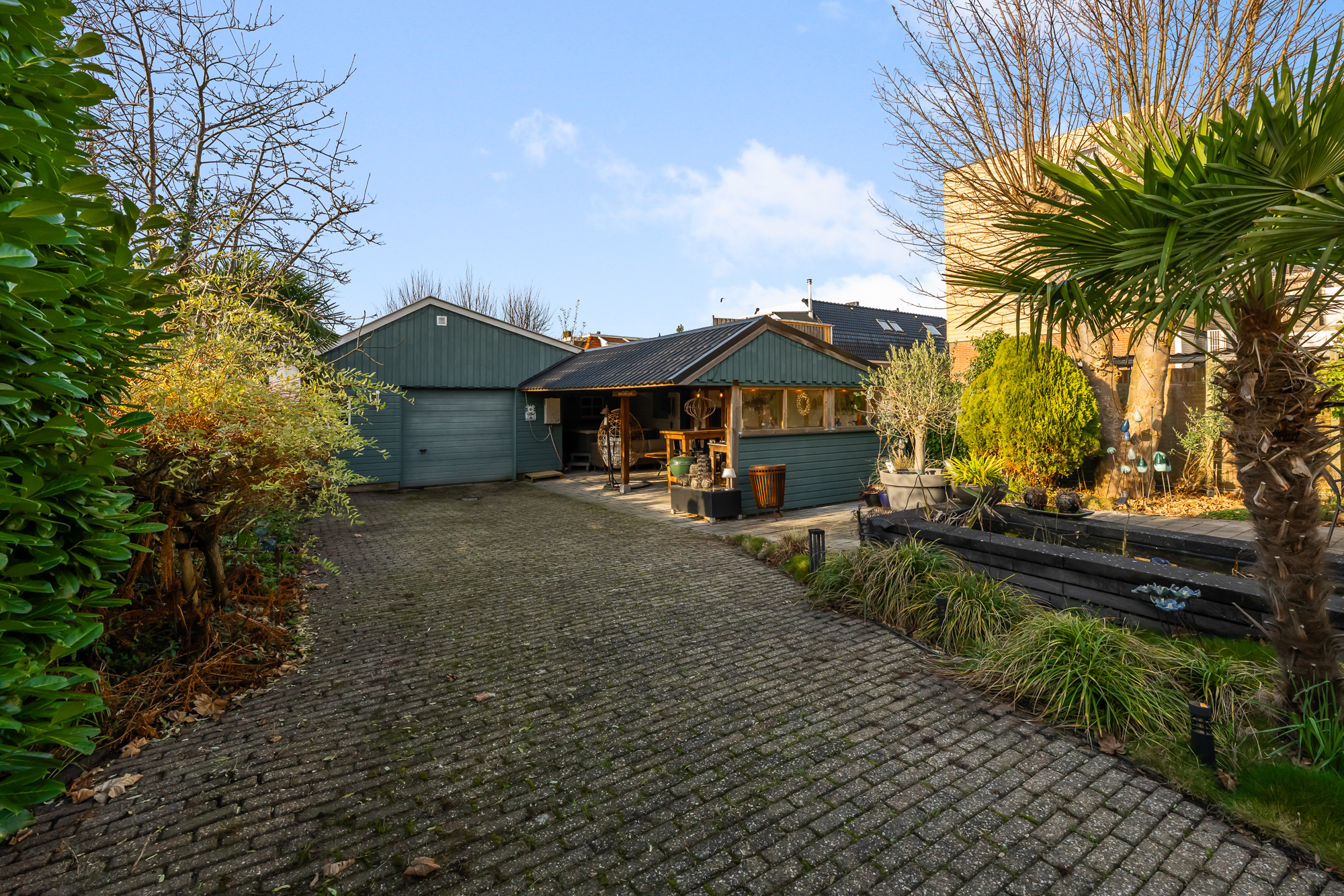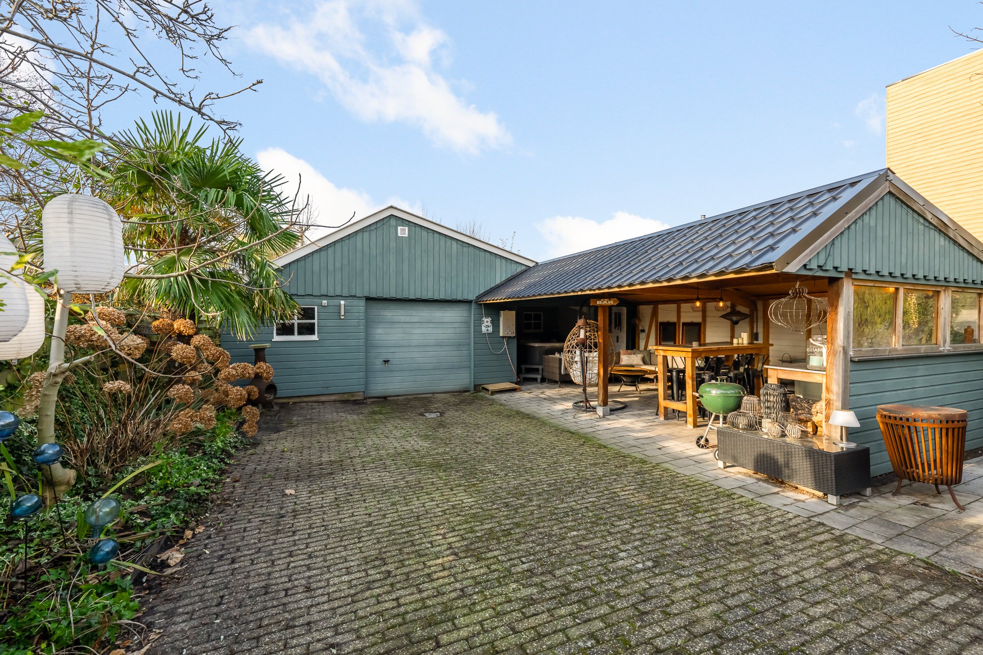 * Grote vrijstaande garage en een berging achter in de tuin;