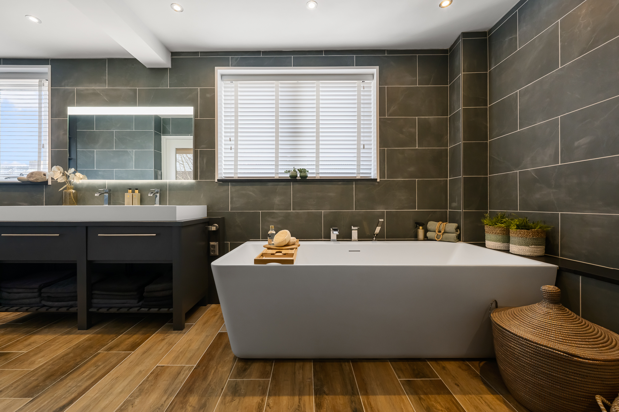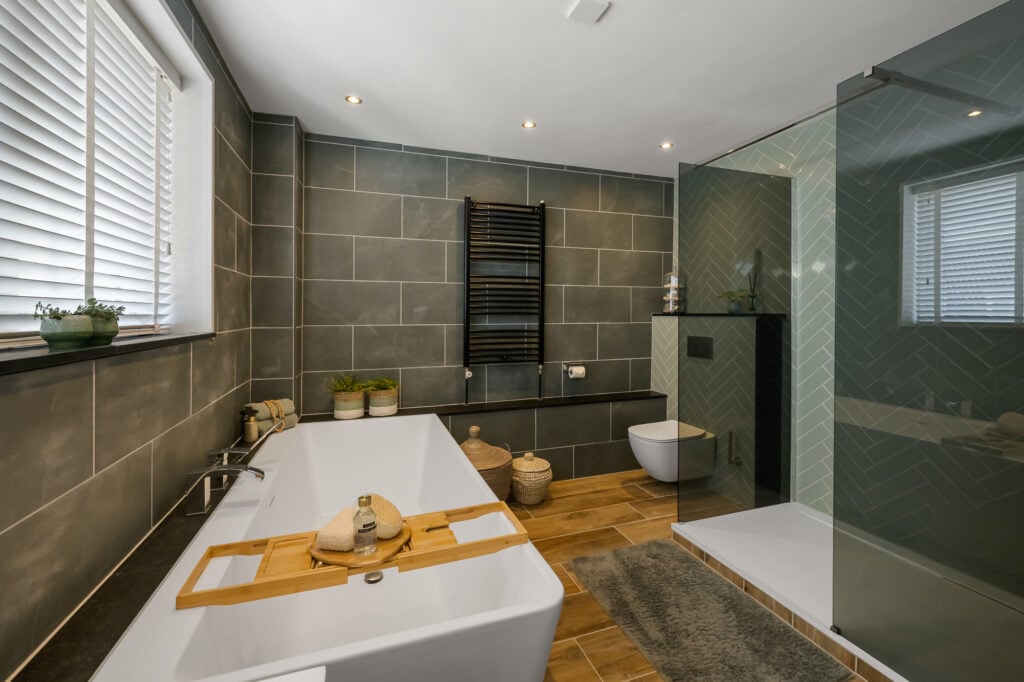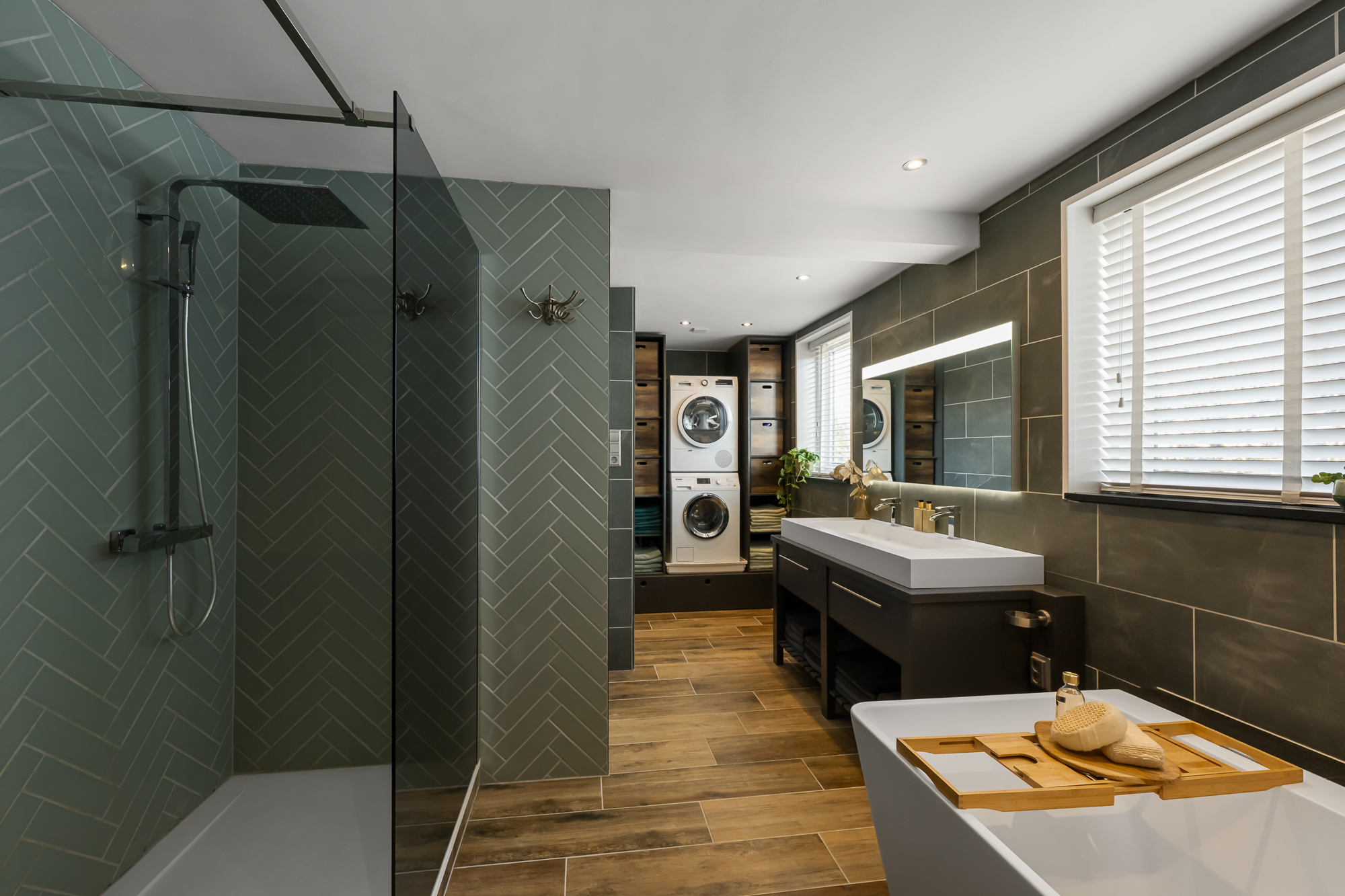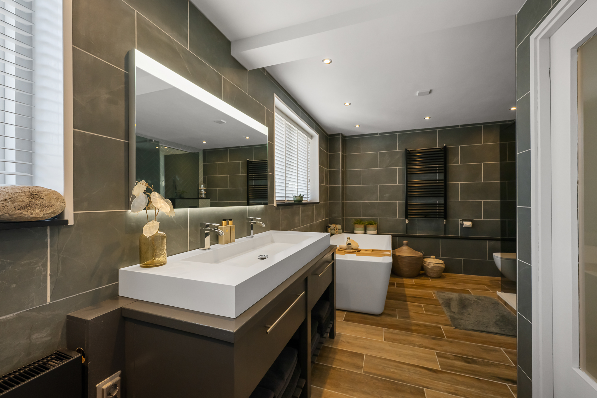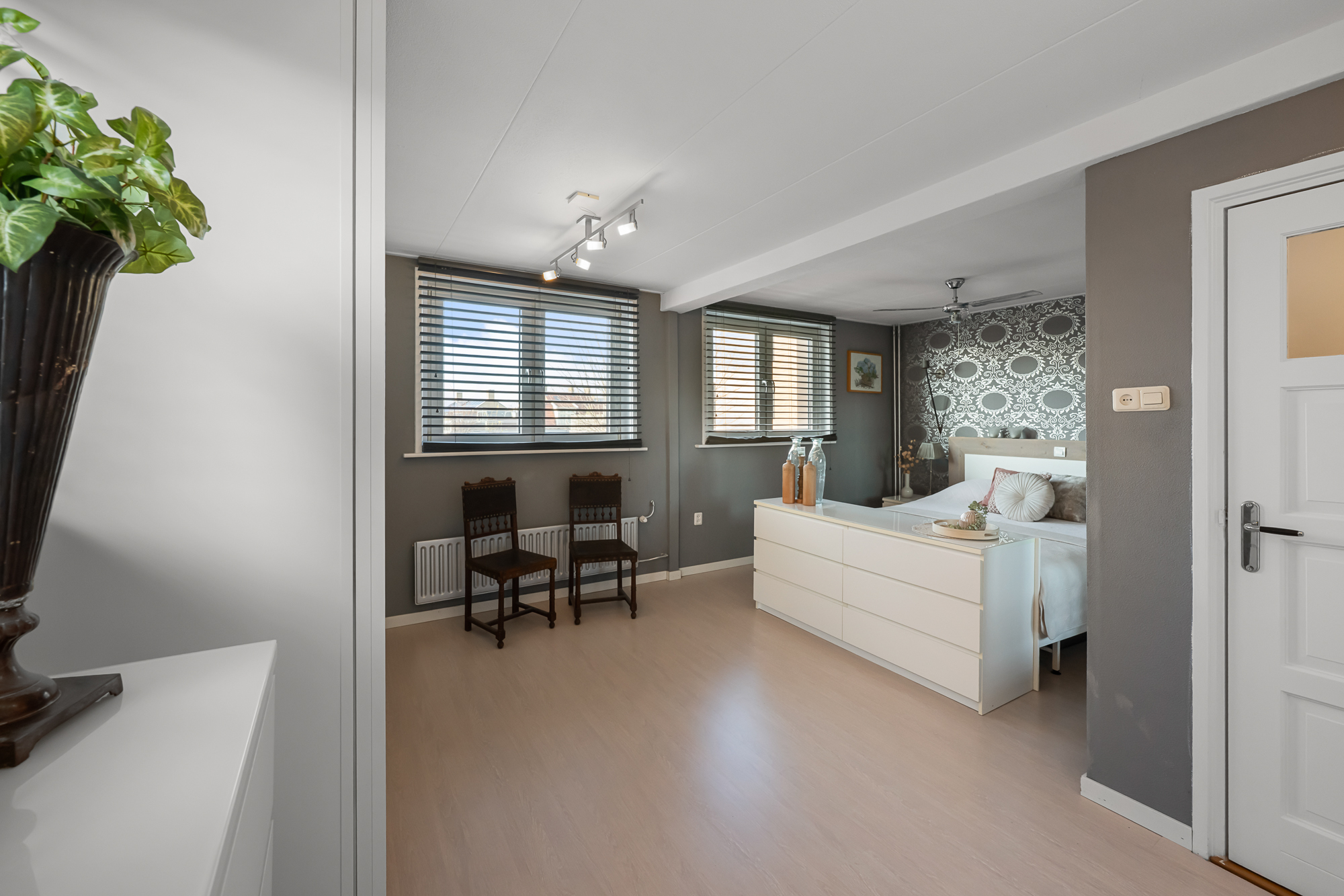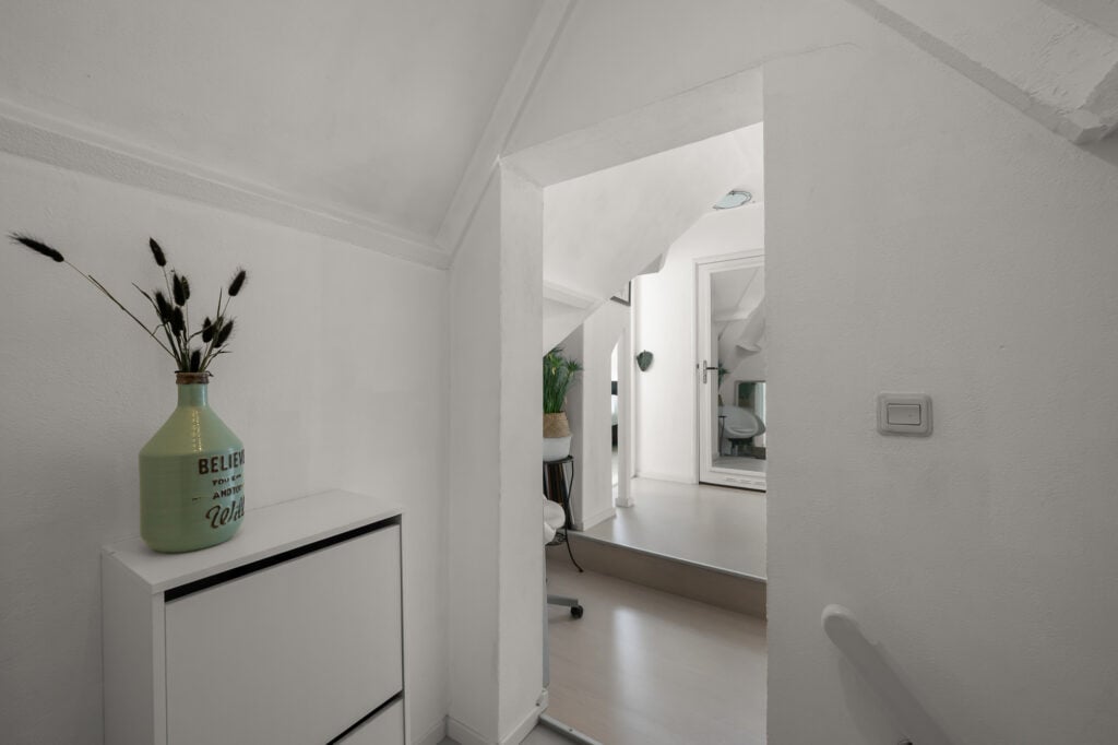 Op de eerste verdieping bevinden zich in 2 slaapkamers, tweede woonkamer (of derde slaapkamer) en de moderne badkamer voorzien van onder andere een ligbad, dubbele wastafel en een inloopdouche, een fijne plek om de dag ontspannen te beginnen of af te sluiten. De tweede verdieping biedt 2 extra slaapkamers en de tweede badkamer en voldoende bergruimte.