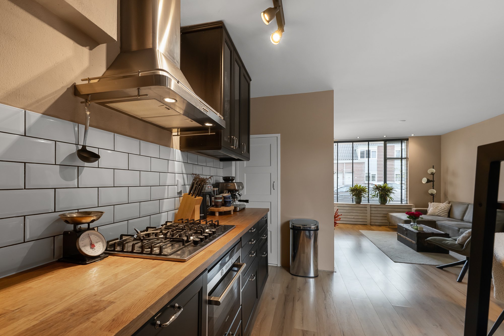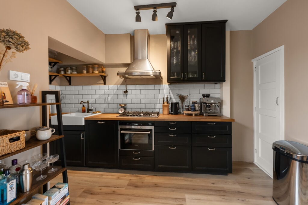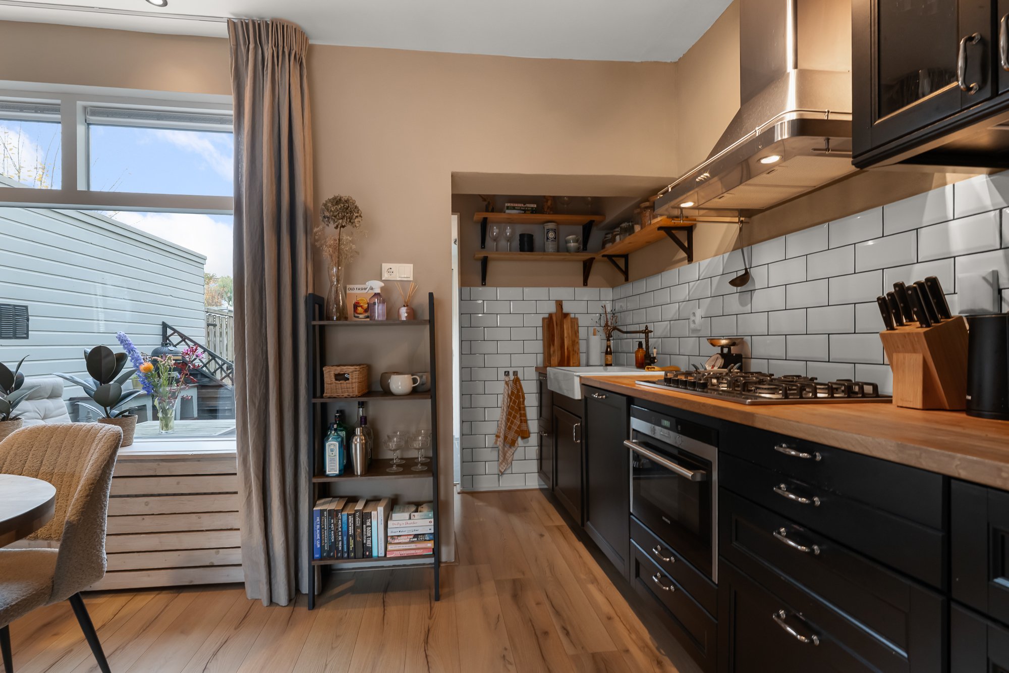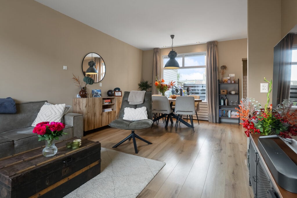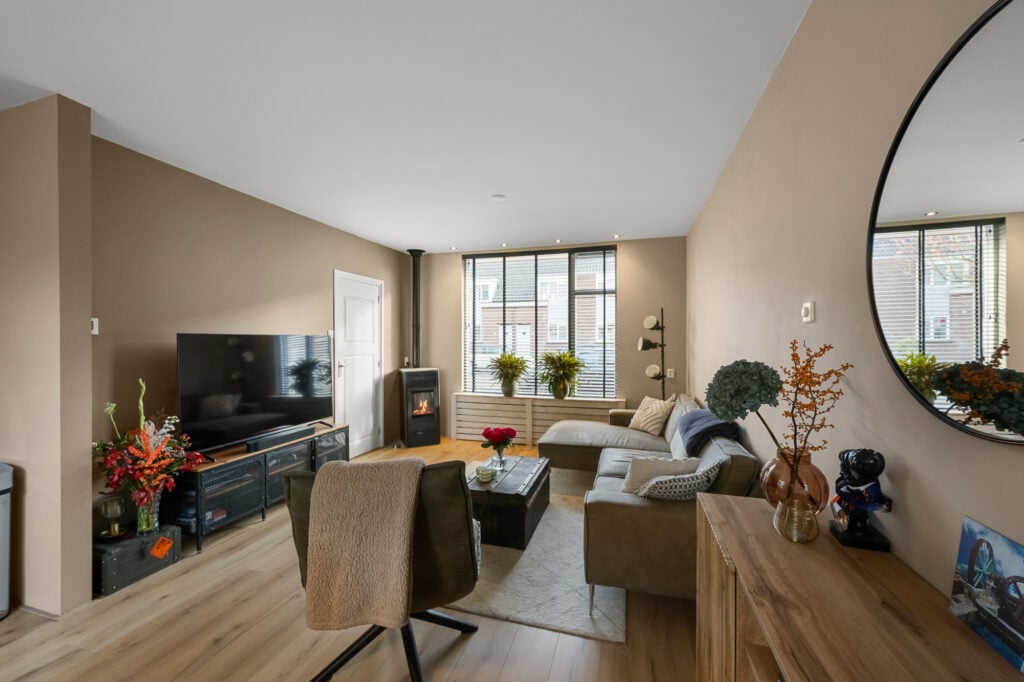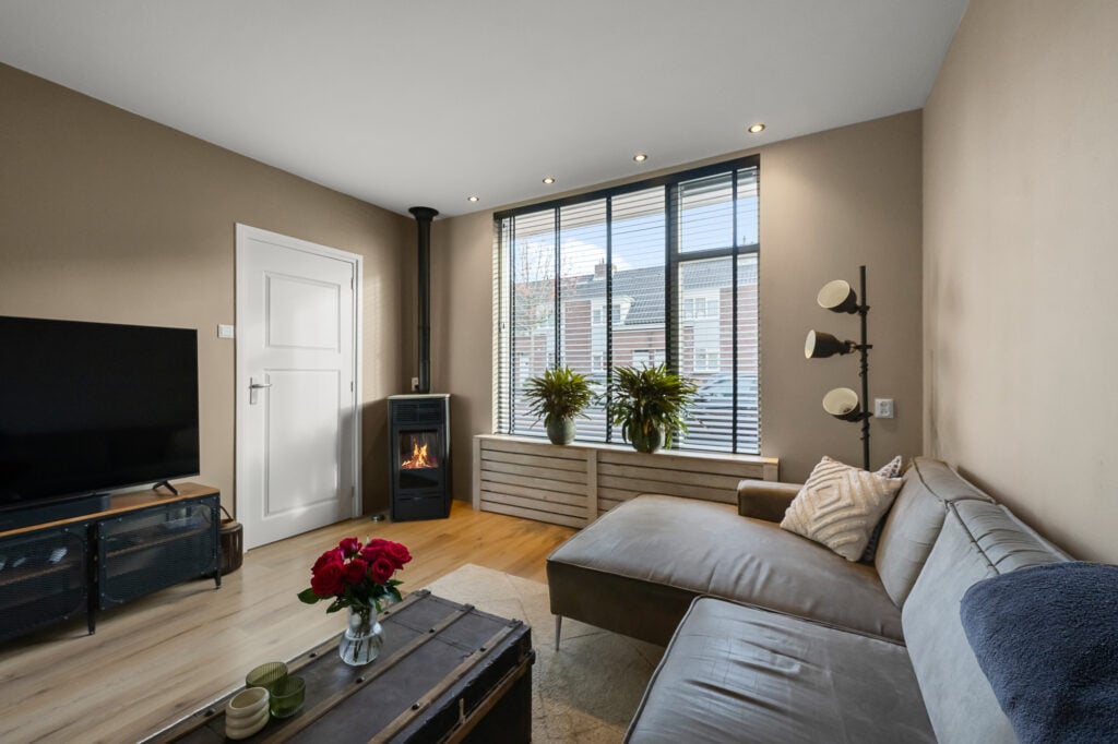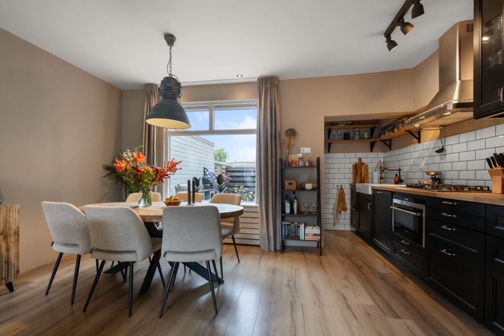 Zodra je binnenstapt, voel je de fijne sfeer die deze woning uitstraalt. De woonkamer is strak afgewerkt, met gestuukte wanden, een keurige vloer en een gezellige pellet kachel die zorgt voor warmte én een lage energierekening. Aan de voorzijde is ruimte voor een knusse zithoek, terwijl je aan de achterzijde de eettafel kwijt kunt met uitzicht op de tuin. De open keuken (2016) sluit hier mooi op aan en is voorzien van diverse inbouwapparatuur, waaronder een oven uit 2024. Aansluitend vind je de bijkeuken met de wasmachineaansluiting en toegang tot de tuin.