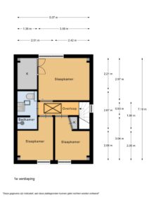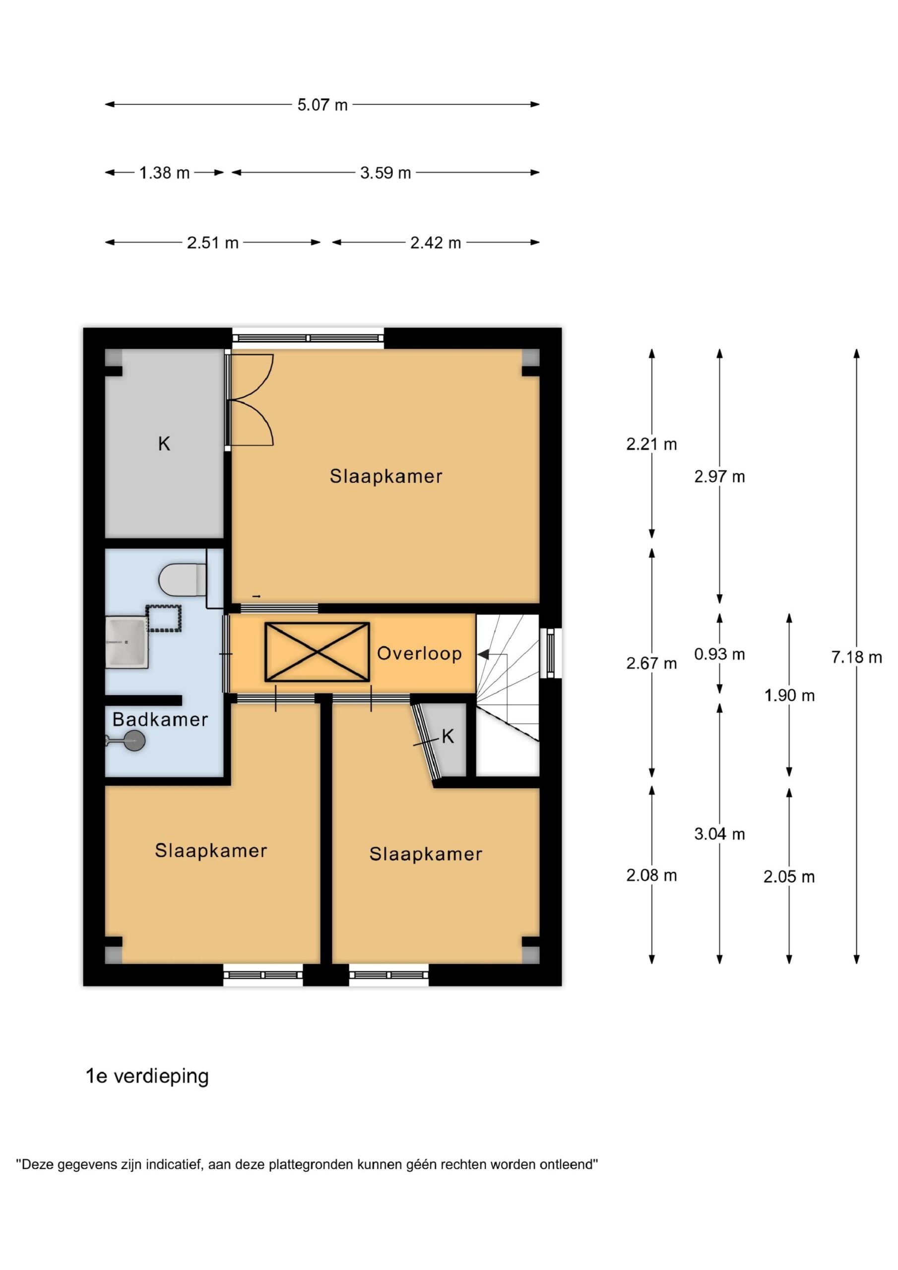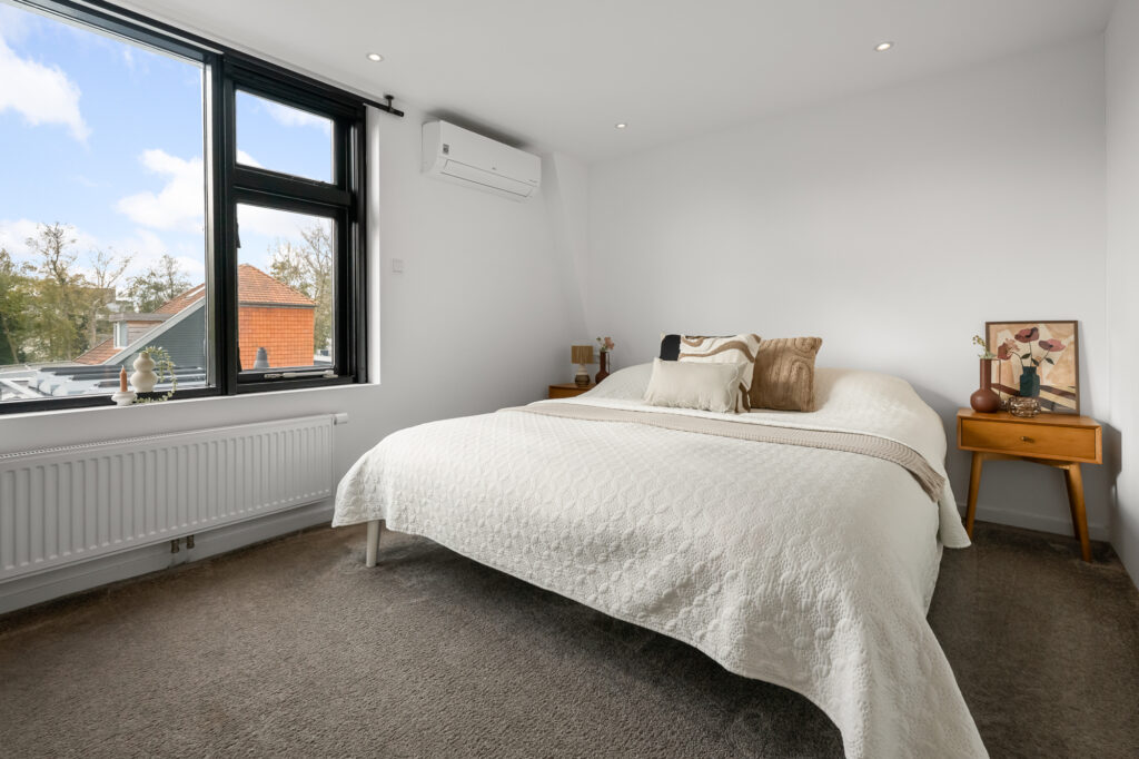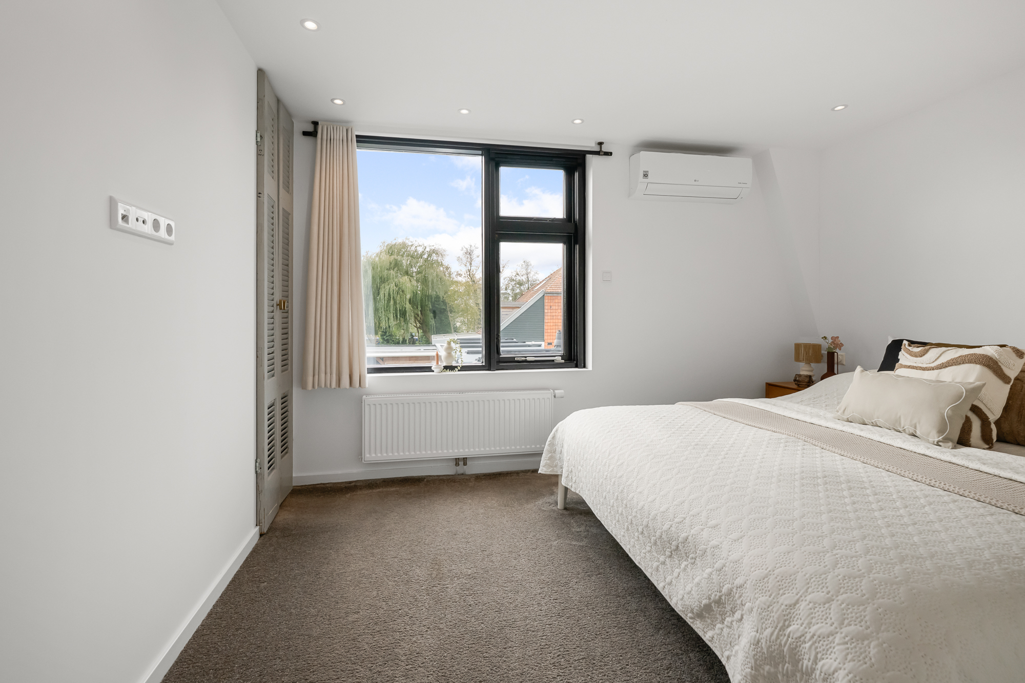 Op de eerste verdieping vind je drie slaapkamers, waaronder een ruime hoofdslaapkamer met inloopkast. De moderne badkamer (2019) is voorzien van een combiregendouche, wastafel en tweede toilet. Daarnaast is er toegang tot de vliering, handig voor extra bergruimte.