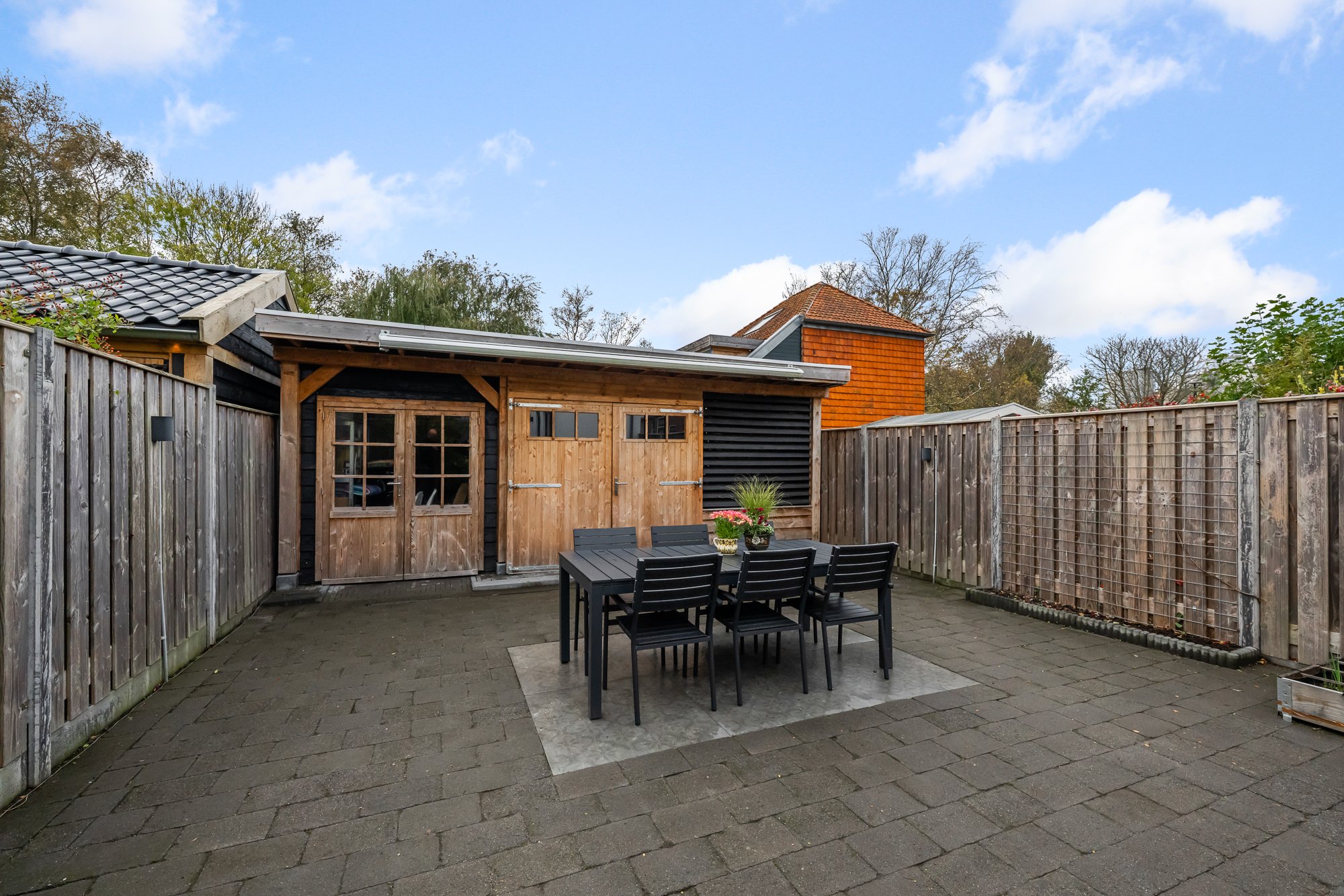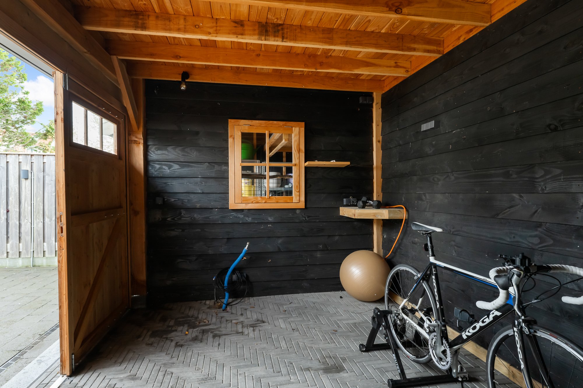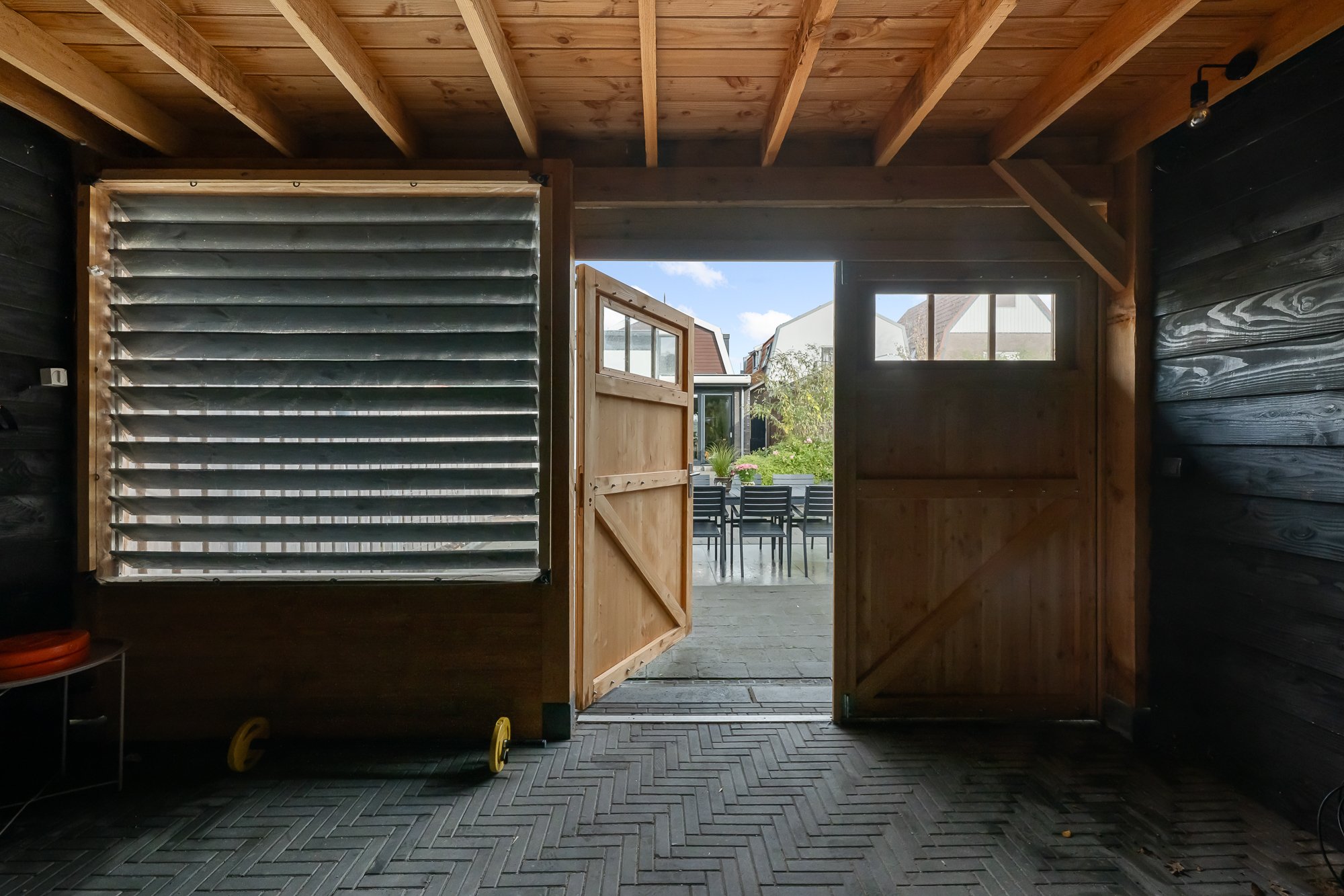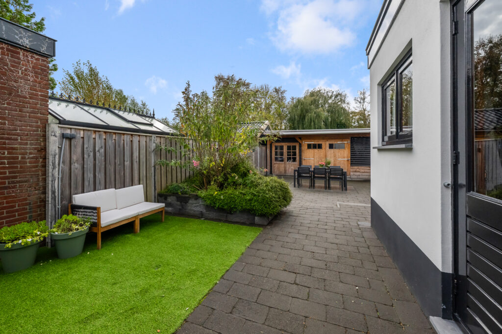 Via de schuifpui stap je de zonnige achtertuin in, gelegen op het zuidwesten. Hier geniet je de hele dag van de zon. De tuin is keurig aangelegd en biedt volop privacy. Achterin de tuin staat een ruime berging met aansluitend een schuur met openslaande deuren, ideaal voor het stallen van fietsen, tuinspullen of bijvoorbeeld een motor.