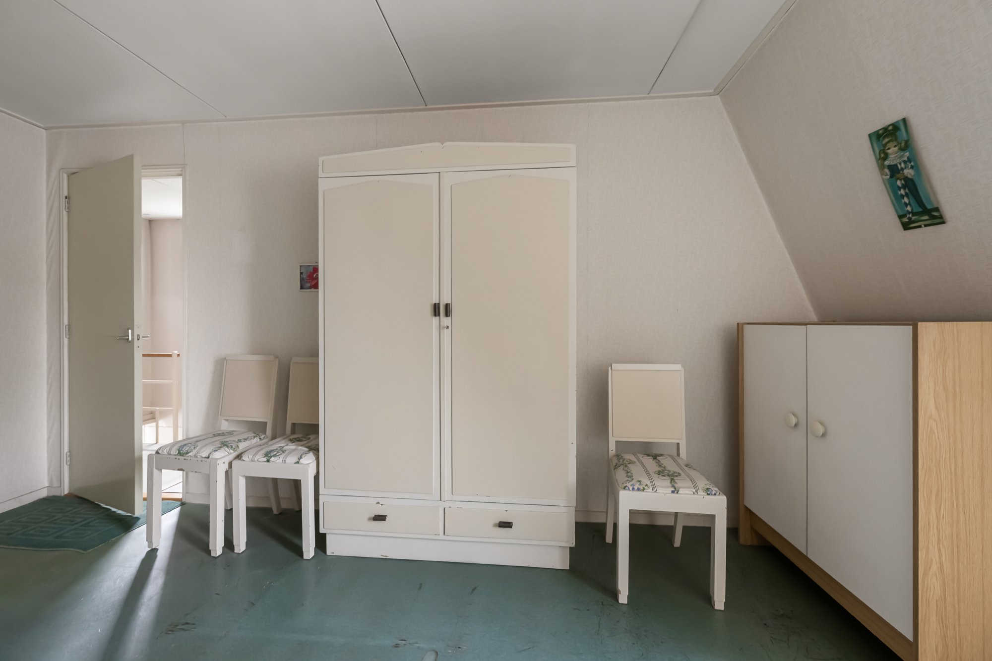 Op de verdieping zijn twee slaapkamers aanwezig en een overloop met opbergruimte. Hier kun je met een slimme indeling eenvoudig meer comfort of extra kamers creëren.