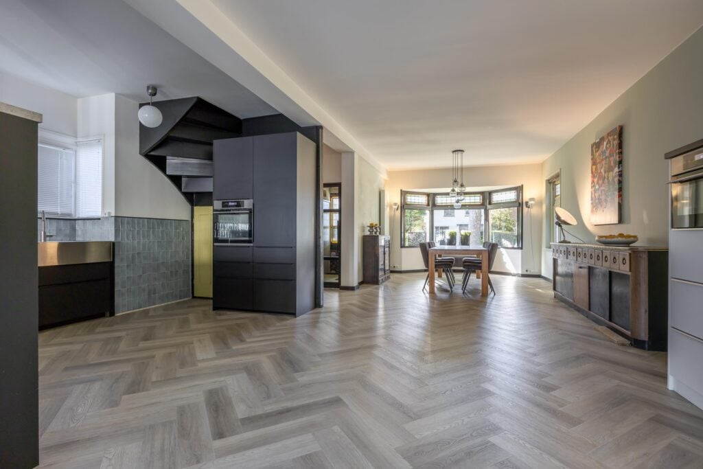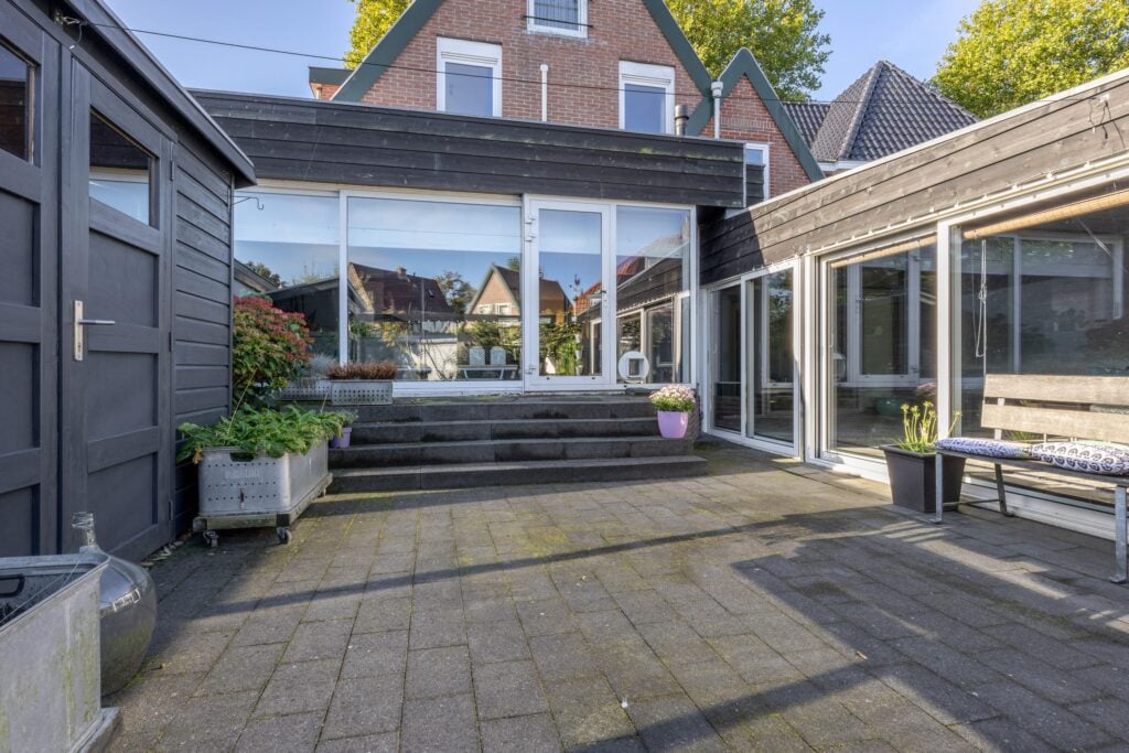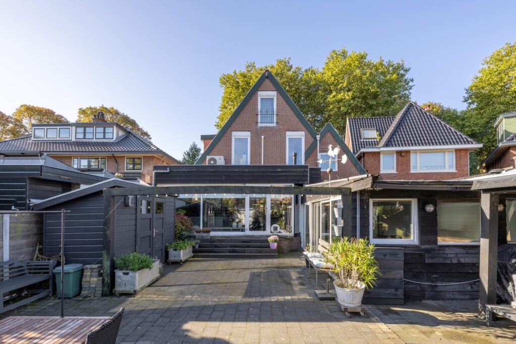 De villa beschikt over zeven kamers, waaronder vier ruime slaapkamers. Dankzij de uitbouw geniet je van een zee aan leefruimte, met onder andere twee keukens en een royale serre met prachtig uitzicht over de diepe achtertuin. Aan de voorzijde van de woning is ruimte om twee auto’s op eigen terrein te parkeren.