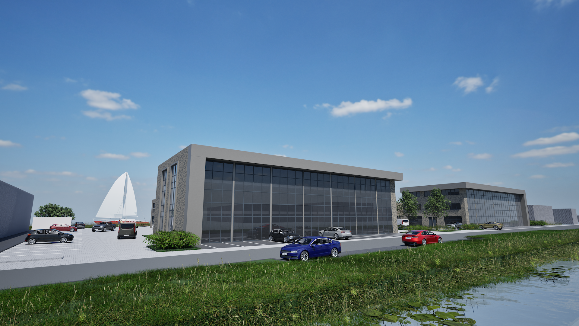 Het aantal parkeerplaatsen varieert per unit. Minimaal 1 parkeerplaats voor de kleinste units en maximaal 5 parkeerplaatsen voor de units van 538 m².
