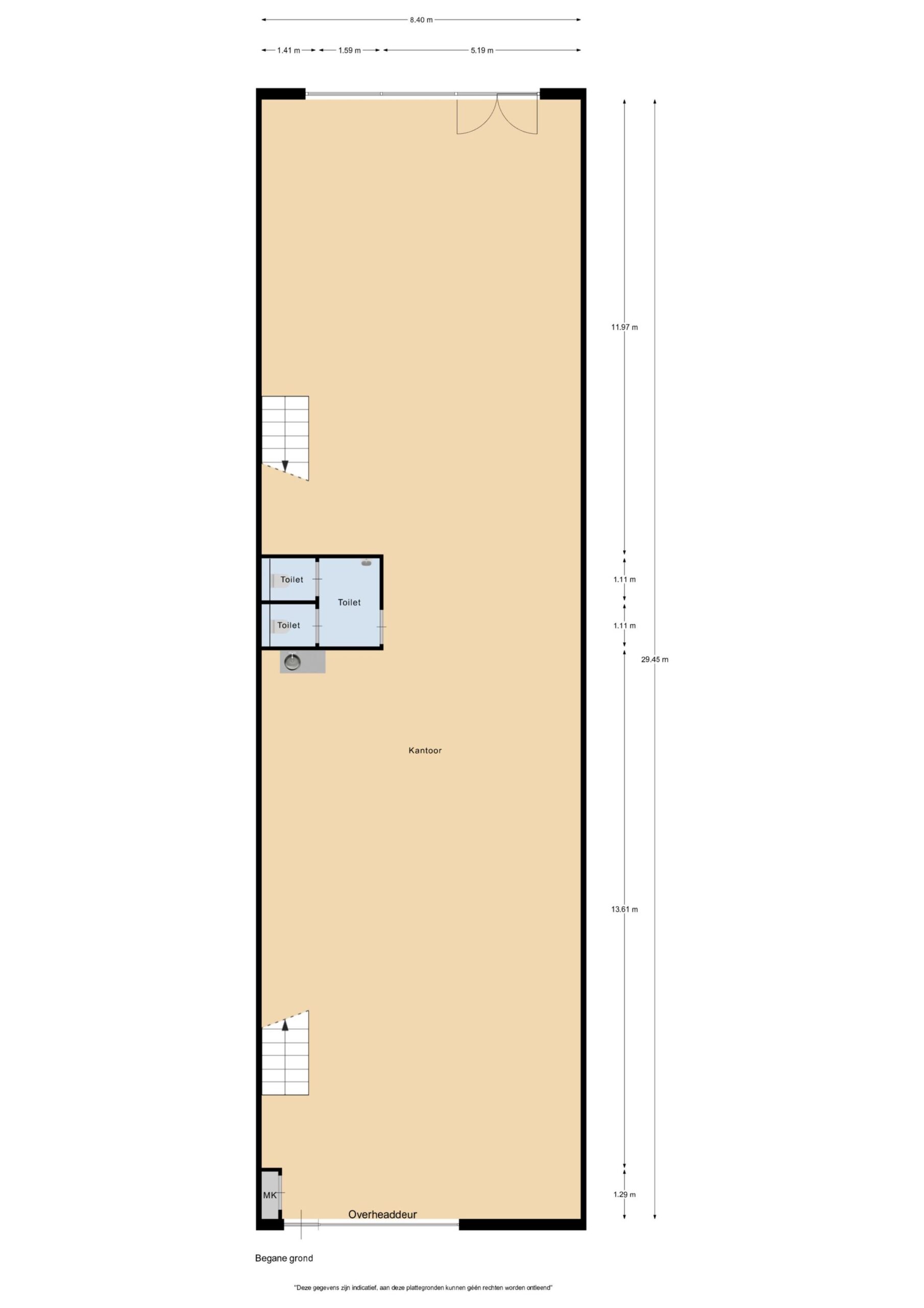 – vrije hoogte begane grond: ca. 3.75 m