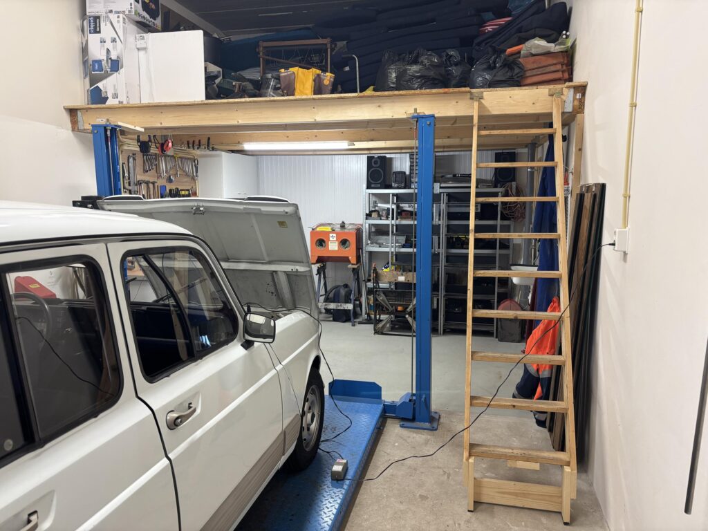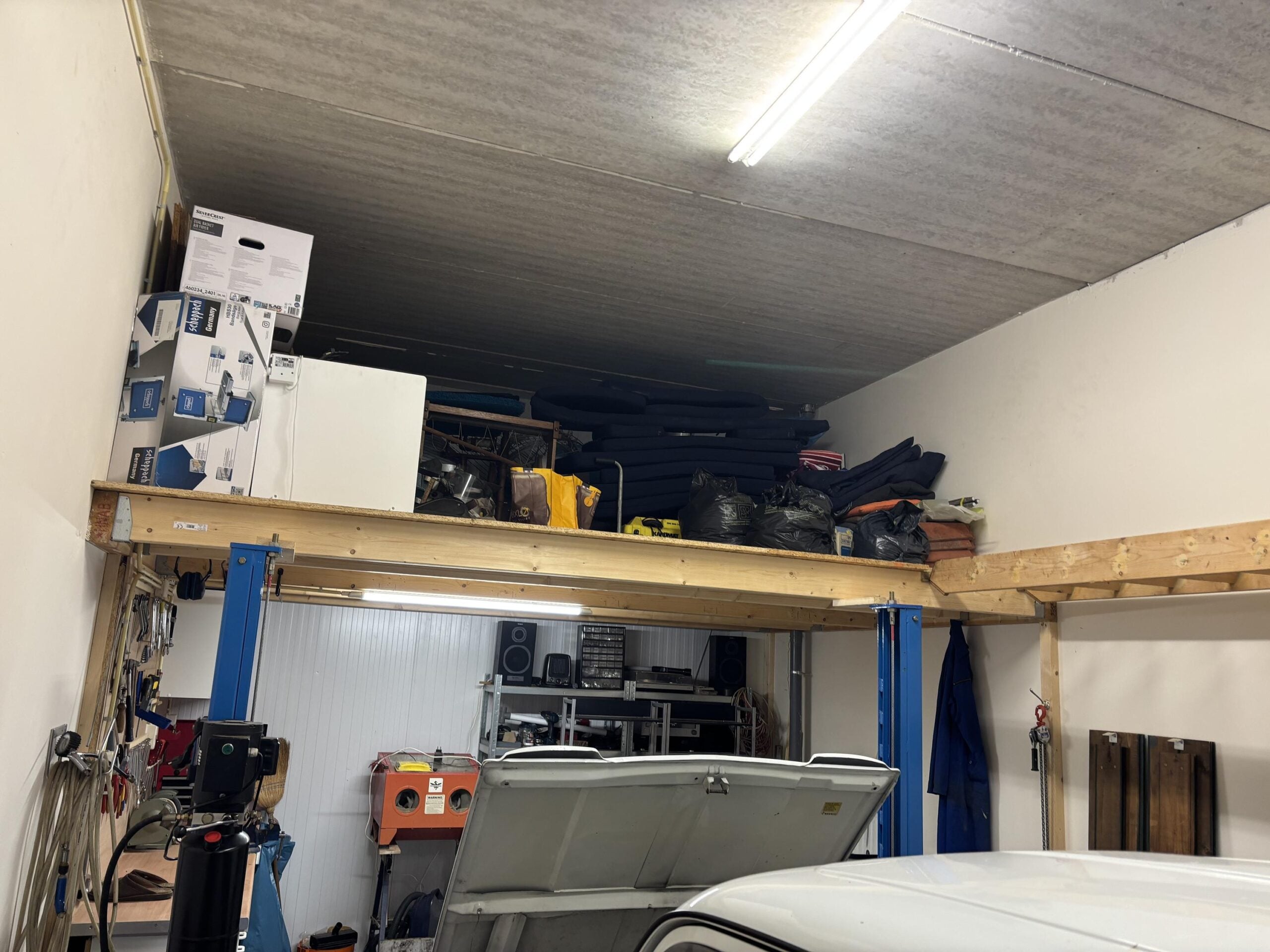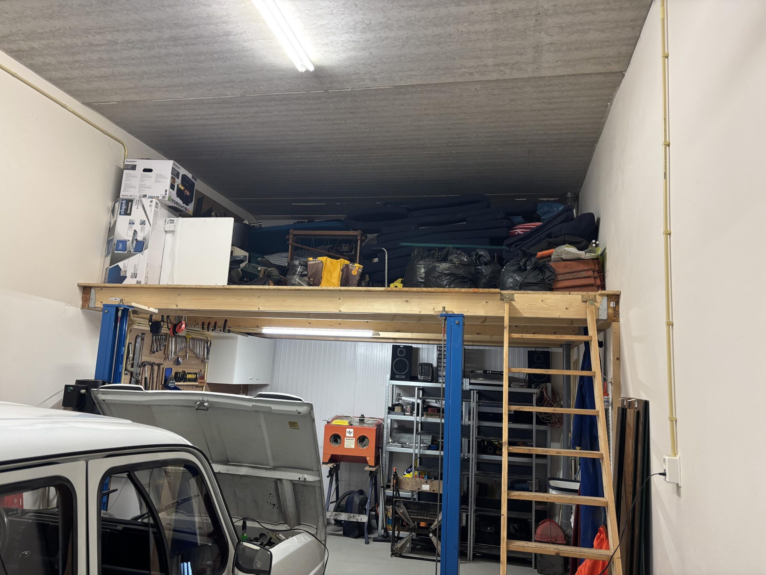 Op een houten tussenvloer van ca 8 m2 kunt u nog wat extra spullen plaatsen.