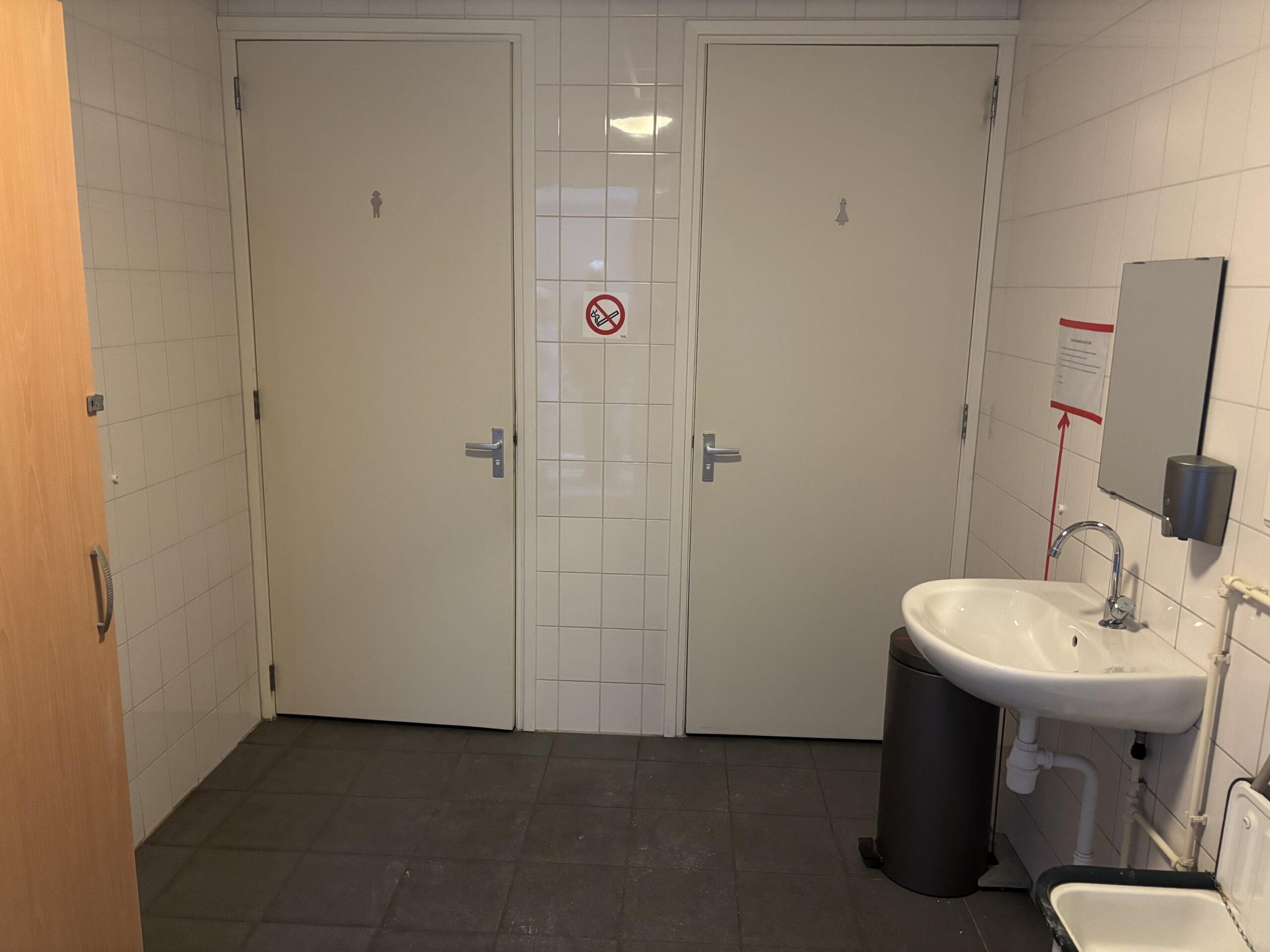 In het complex is een centrale ruimte met toiletten en wastafels.